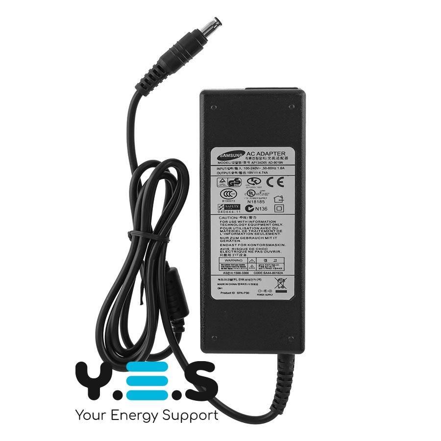 Адаптер живлення для ноутбука Samsung 90W (19V/4.74A), розʼєм 5.5×3.0 з PIN, без мережевого кабелю