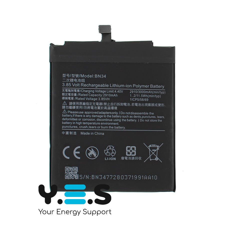 Акумуляторна батарея BN34 для смартфона Xiaomi Redmi 5A — якісний та надійний варіант для щоденного використання. Забезпечує стабільну роботу пристрою та підходить для заміни зношеного акумулятора.