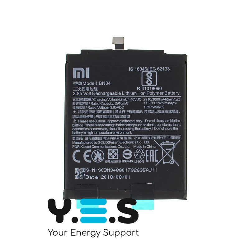 Акумуляторна батарея BN34 для смартфона Xiaomi Redmi 5A — якісний та надійний елемент живлення для щоденного використання. Забезпечує стабільну роботу пристрою та підходить для заміни зношеного акумулятора.
