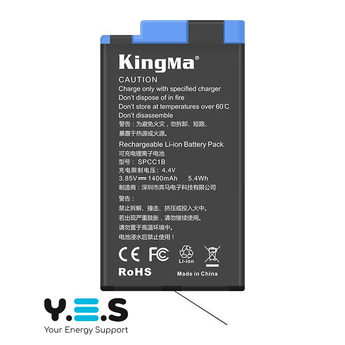 - Чесна ємність: якщо заводська ємність акумулятора KingMa SPCC1B дорівнює 1400 mAh, то саме ця ємність і буде заявлено на акумуляторі, ні одиницею більше. Якщо ви знайшли батарею, ємність якої на етикетці значно перевищує оригінальну, то це, напевно, помилкова інформація. Якість складання: акумулятори KingMa проходять ретельний процес контролю якості на кожному етапі виробництва. Кожна батарея тестується на перегрів (overheating), коротке замикання (short circuit), повний розряд (over discharging) і надзаряд (overcharging), перенапруга (overvoltage) і надструми (overcurrent)