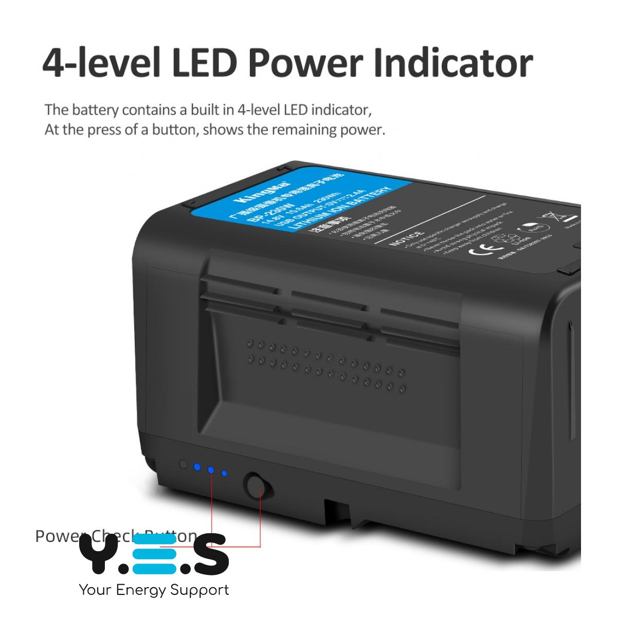 Акумуляторна батарея KingMa V Mount / V-Lock - 230 Wh 14.8V 15600 mAh - призначена для професійних камер та обладнання, що використовують IDX V-Mount (V-Lock) систему: Sony, Red, Canon, Arri, Blackmagic, Panasonic, JVC та інші. Акумулятор обладнаний USB та D-Tap портами, що дозволяє використовувати батарею як зовнішнє джерело живлення для пристроїв різного типу.