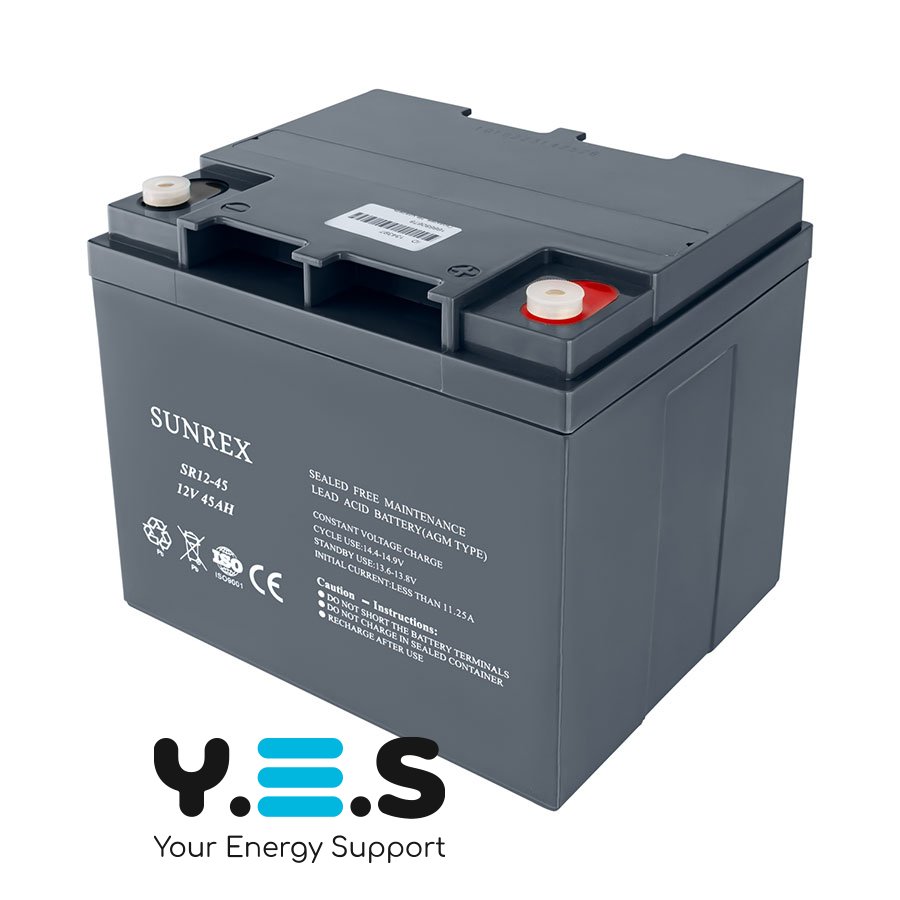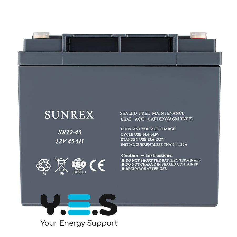 Акумуляторна батарея SUNREX SR12-45, Ємність: 45Ah, 12V, 12.9kg, AGM battery, розміри: 198х166х174мм (ДБЖ UPS)