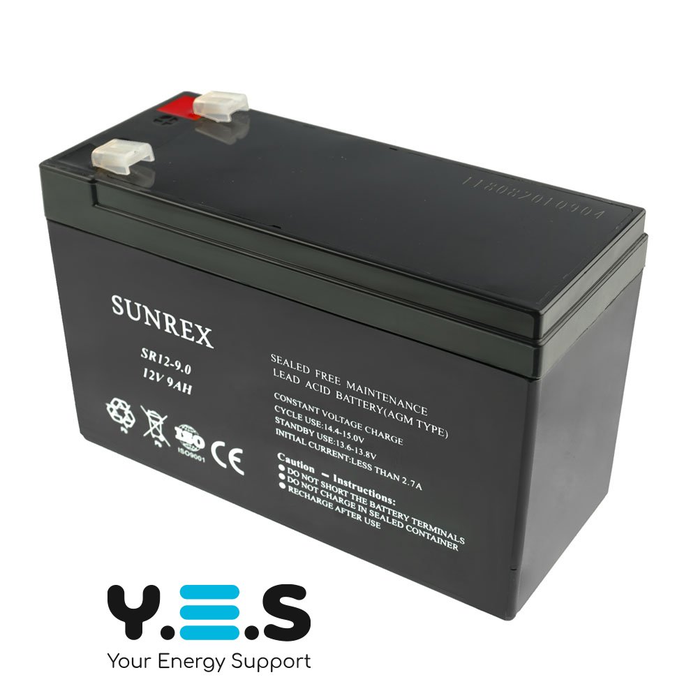 Акумуляторна батарея SUNREX SR12-9, Ємність: 9Ah, 12V, 2.44kg, AGM battery, розміри: 151х65х94мм (ДБЖ UPS)