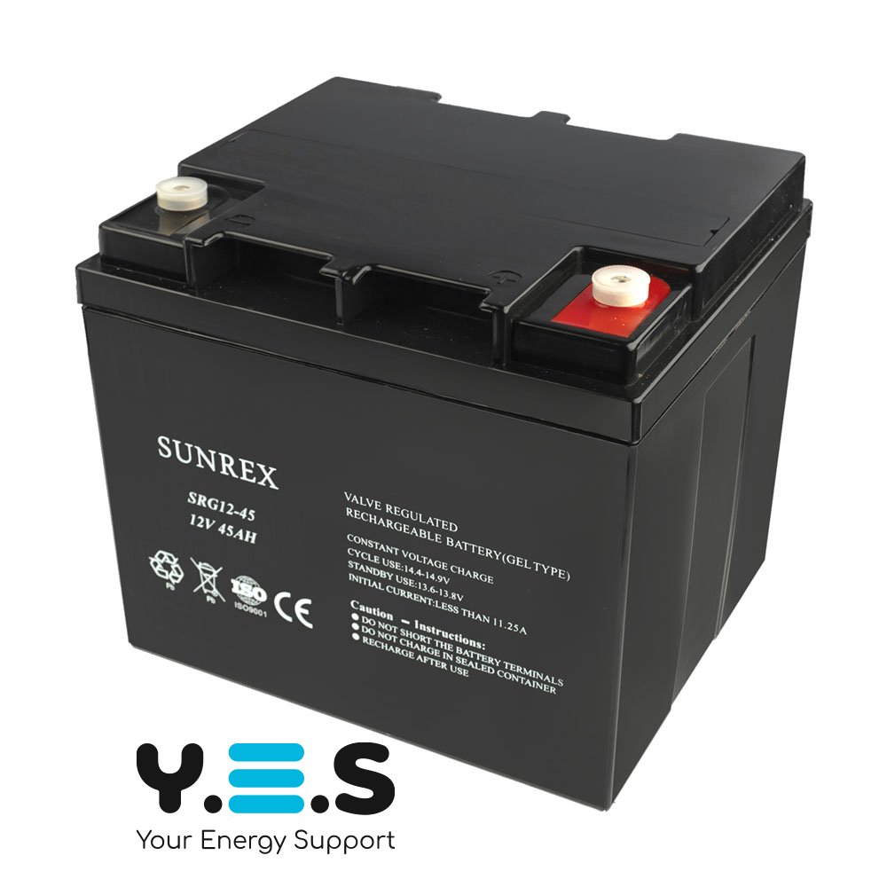 Акумуляторна батарея SUNREX SRG12-45, Ємність: 45Ah, 12V, 12.9kg, гелевий, розміри: 198х166х174мм (ДБЖ UPS)