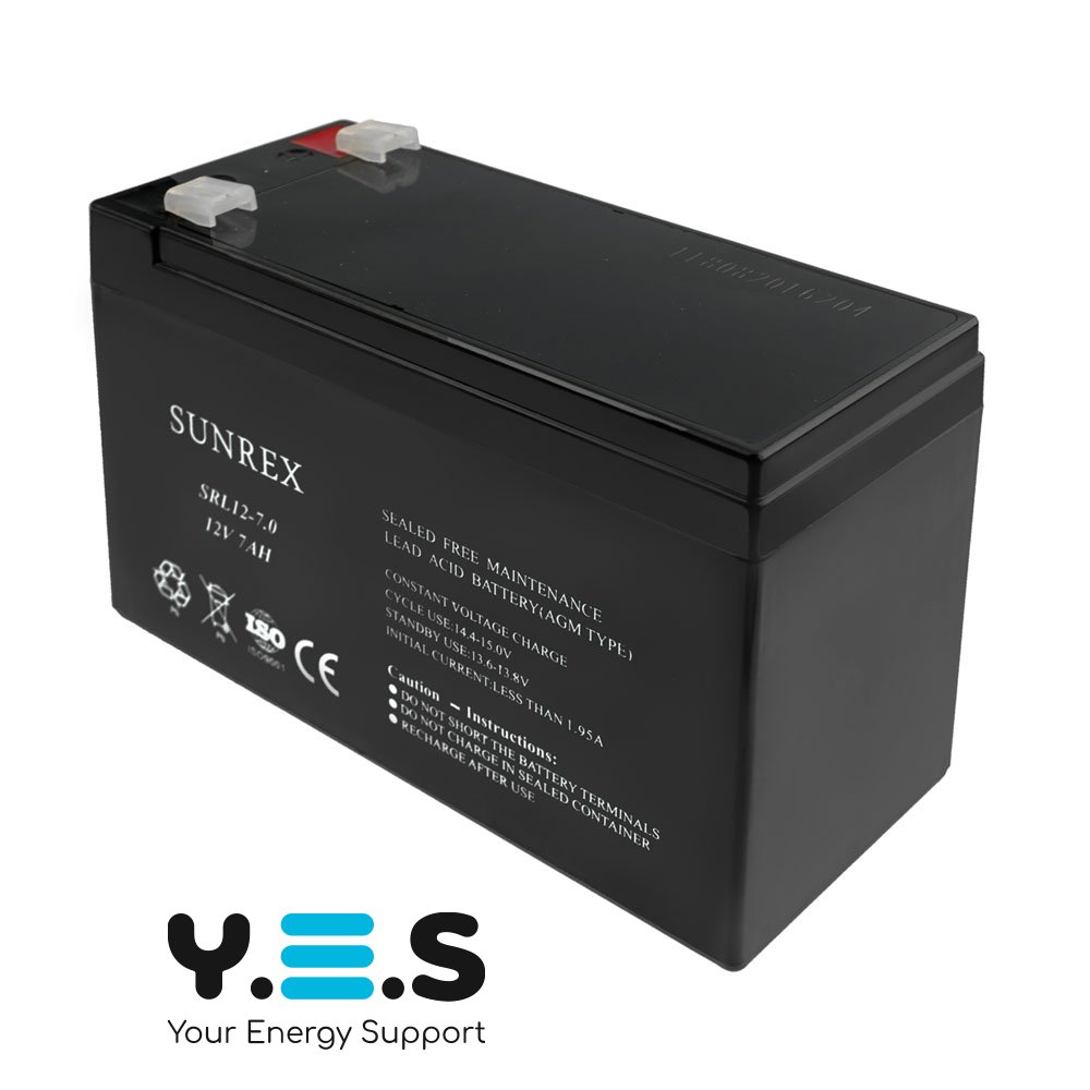 Акумуляторна батарея SUNREX SRL12-7.0, Ємність: 7Ah, 12V, 1.9kg, AGM battery, розміри: 151х65х94мм (ДБЖ UPS)