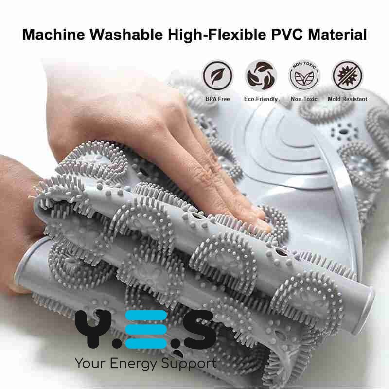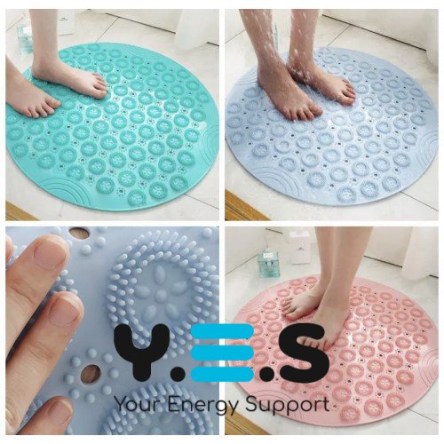 Антиковзний масажний килимок для ванної на присосках — практичний аксесуар для ванної кімнати, який допомагає зменшити ковзання на мокрій поверхні та забезпечує приємний масажний ефект для стоп під час щоденних водних процедур. Виготовлений із ПВХ, килимок розрахований на регулярне використання та надійно фіксується на дні ванни завдяки присоскам.