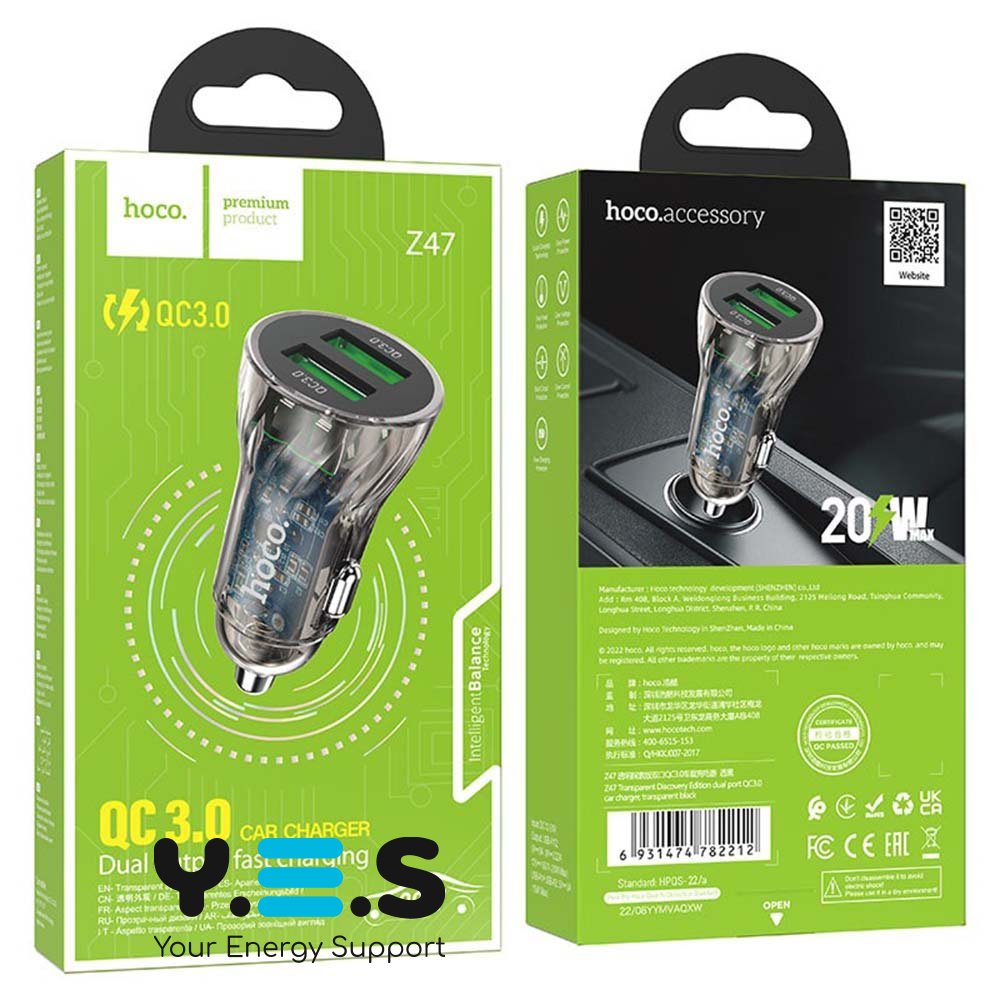 Авто зарядний пристрій Hoco Z47 QC3.0 (2USB20W) Чорне - призначене для великого асортименту пристроїв, смартфонів, планшетів, плеєрів, електронних книг та багатьох інших девайсів, сумісних за характеристиками та параметрами.