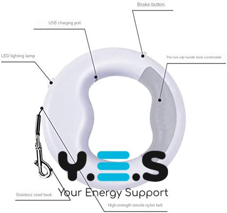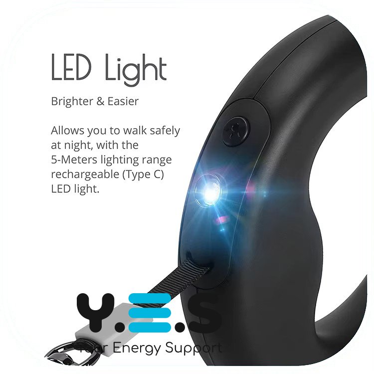 Автоматичний повідець-рулетка SKEPPY 3 м для собак з LED-підсвічуванням і кільцем