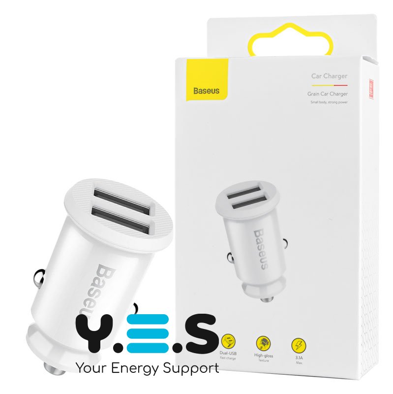Автомобільна зарядка Baseus Grain 3.1A, 2×USB, біла (CCALL-ML02)