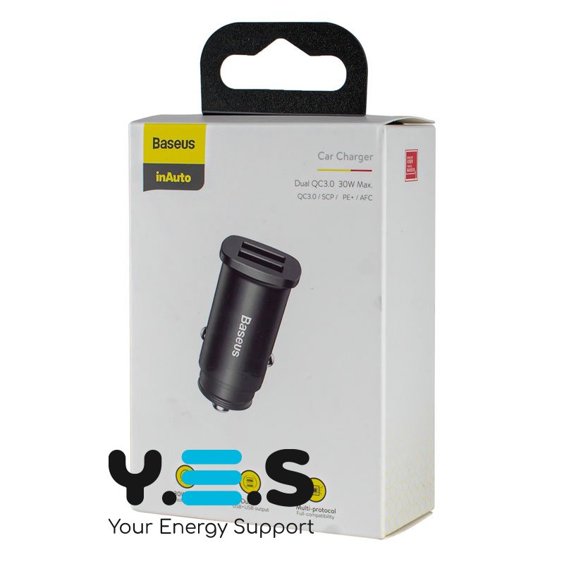 Автомобільний зарядний Baseus Square Metal 30W, 2xUSB-A (QC3.0/SCP/AFC), чорний CCALL-DS01