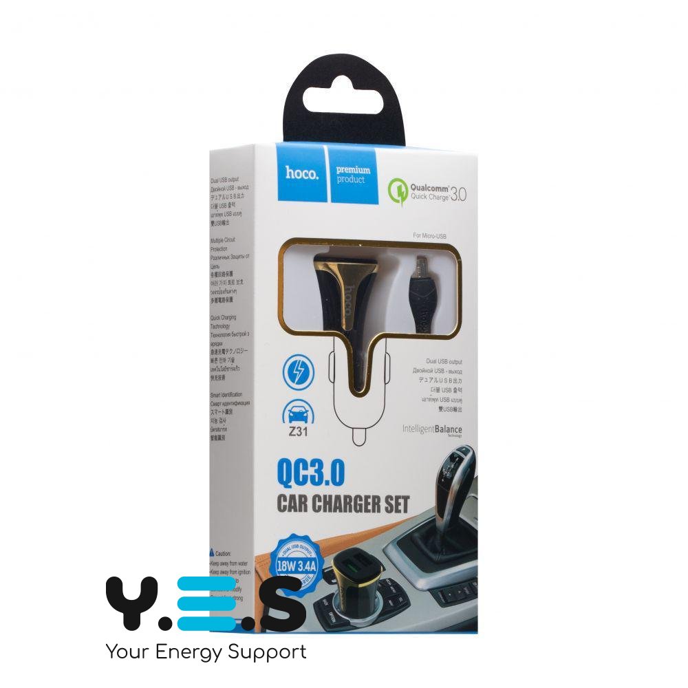 Автомобільний зарядний Hoco Z31 3.4 A 18W Quick charge 3.0 Micro USB Чорний