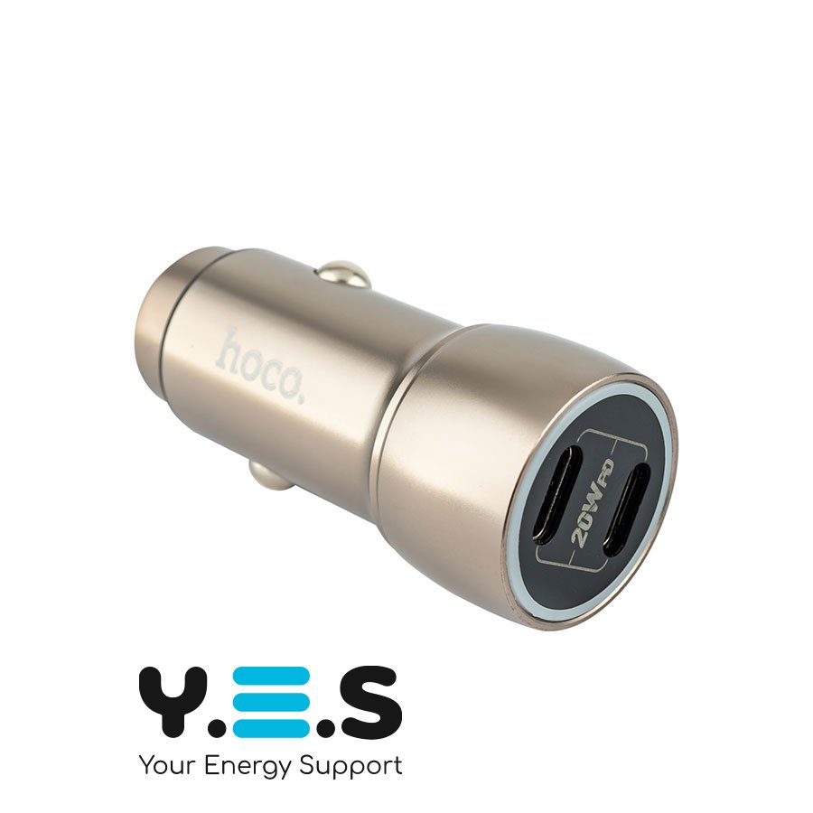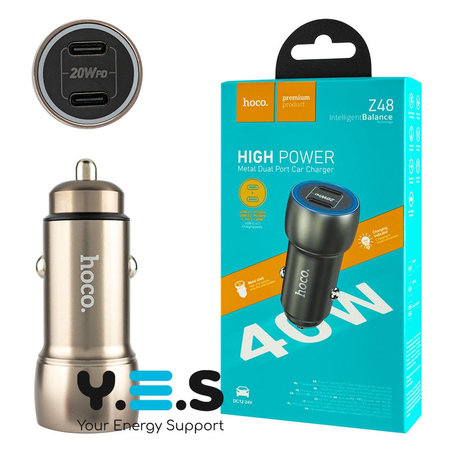 Автомобільний зарядний HOCO Z48 Tough 40W, 2×USB-C (dual port), Metal Gray