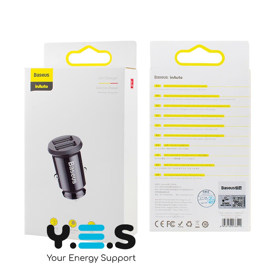 Автомобільний зарядний пристрій Baseus Grain Car Charger 3.1A Dual USB Black (CCALL-ML01) — якісний та надійний аксесуар для щоденного використання в авто. Дозволяє одночасно заряджати два пристрої від прикурювача, забезпечуючи стабільне живлення під час поїздок.