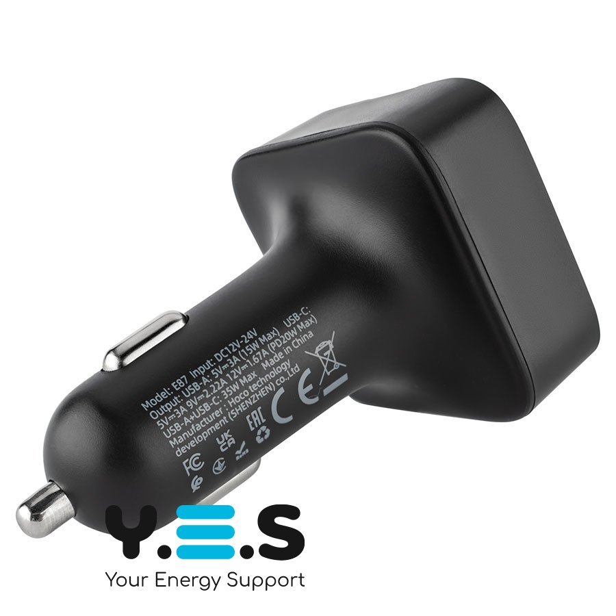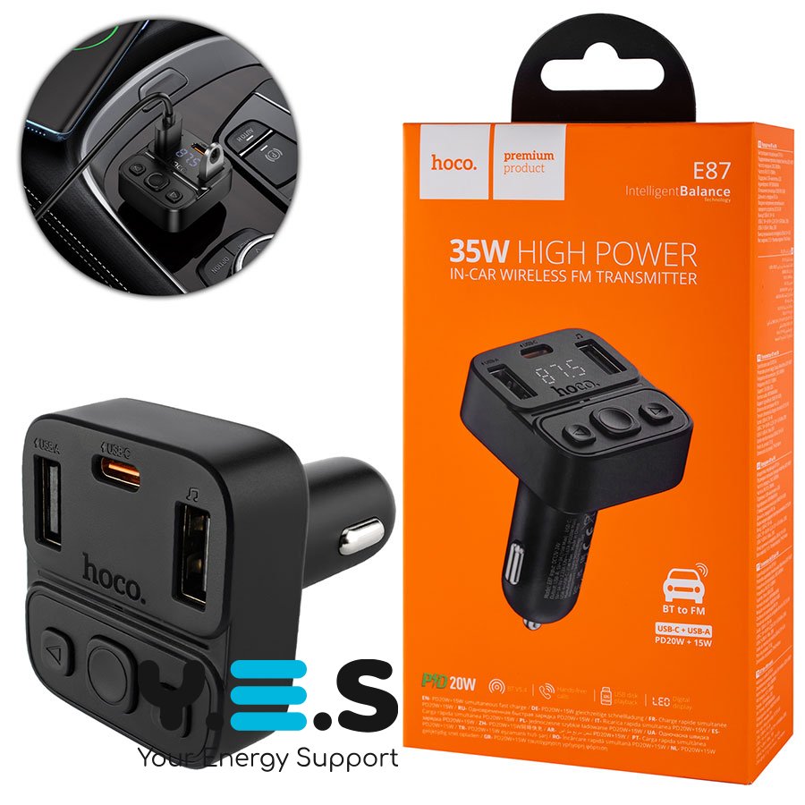 Автозарядка HOCO E87 Delta з FM-модулятором, BT, 35W, 1A/1C, чорна (6942007658980)