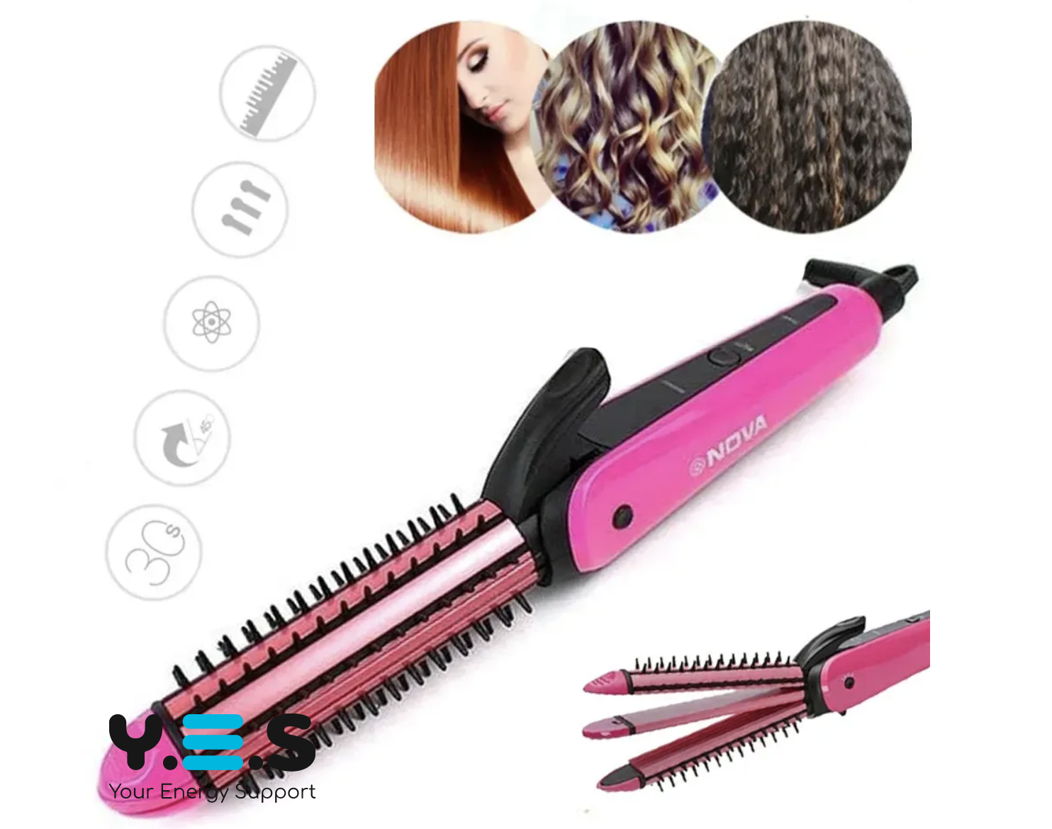 Багатофункціональний стайлер-утюжок Nova NHC-8890 3-в-1: випрямлення, гофре, локони