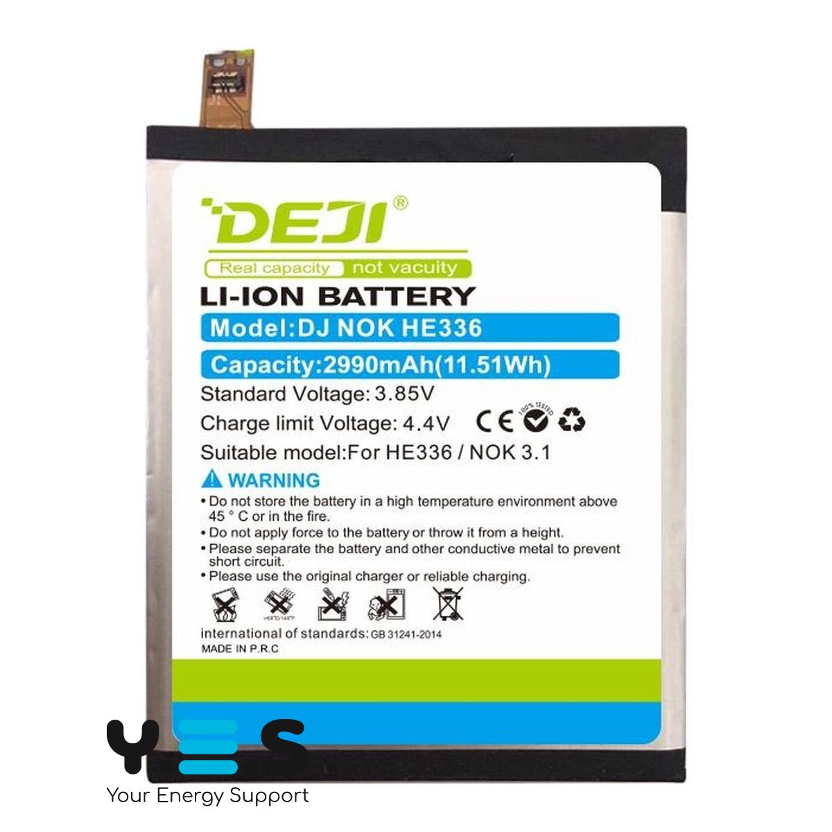 Батарея DEJI HE336 розроблена як надійна та безпечна заміна для Nokia 3.1 та Nokia 5.1. Модель забезпечує стабільну роботу пристрою, довший час автономної роботи та сумісність із заводськими характеристиками по напрузі та розмірам.