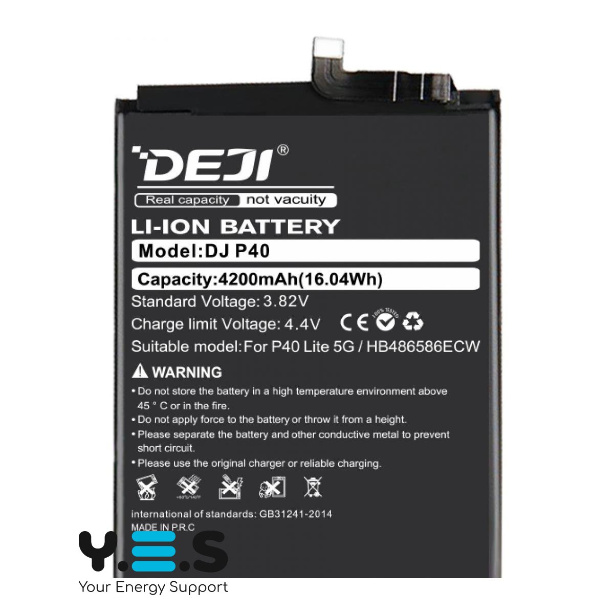 Надійний акумулятор замінного типу Li-Ion від бренду DEJI для смартфонів Huawei P40 lite та Honor V30 — потужність 16.04 Wh та напруга 3.82 V, ємність 4200 mAh, гарантія 6 місяців.