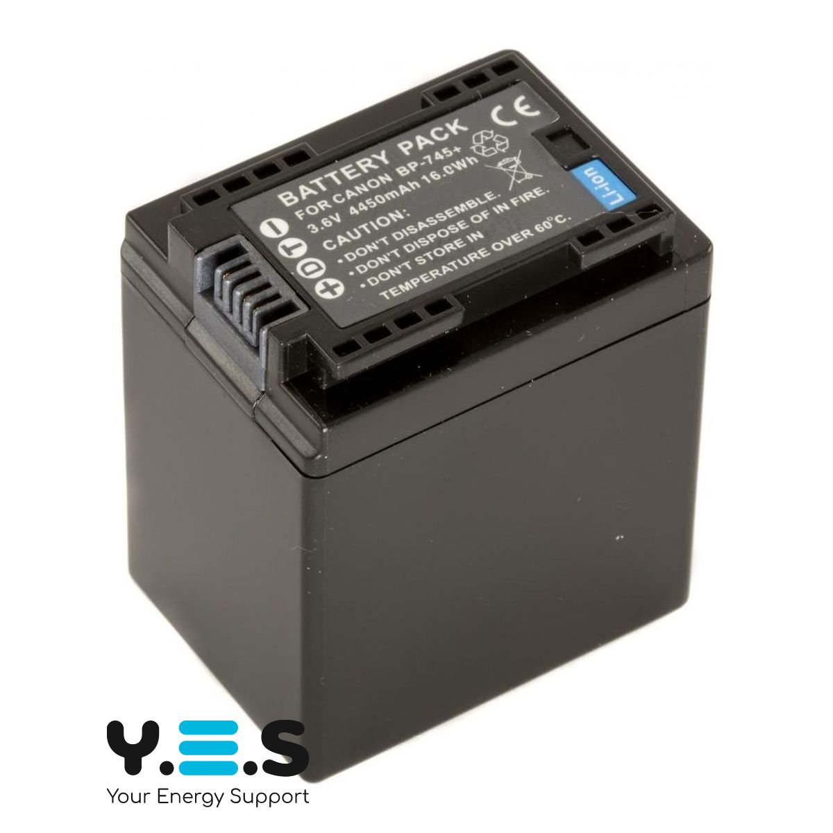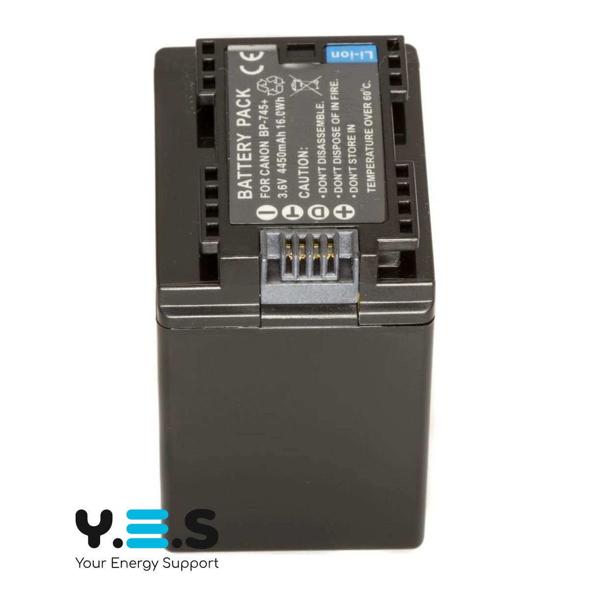 Батарея BP-745, ємністю 4450 mAh, 100% сумісна з оригінальним акумулятором CANON BP-745. Батарея містить «інфо-чіп», який дозволяє відображати залишок часу заряду або кількість кадрів на дисплеї камери, і заряджати акумулятор як від оригінального зарядного пристрою CANON CG-700.