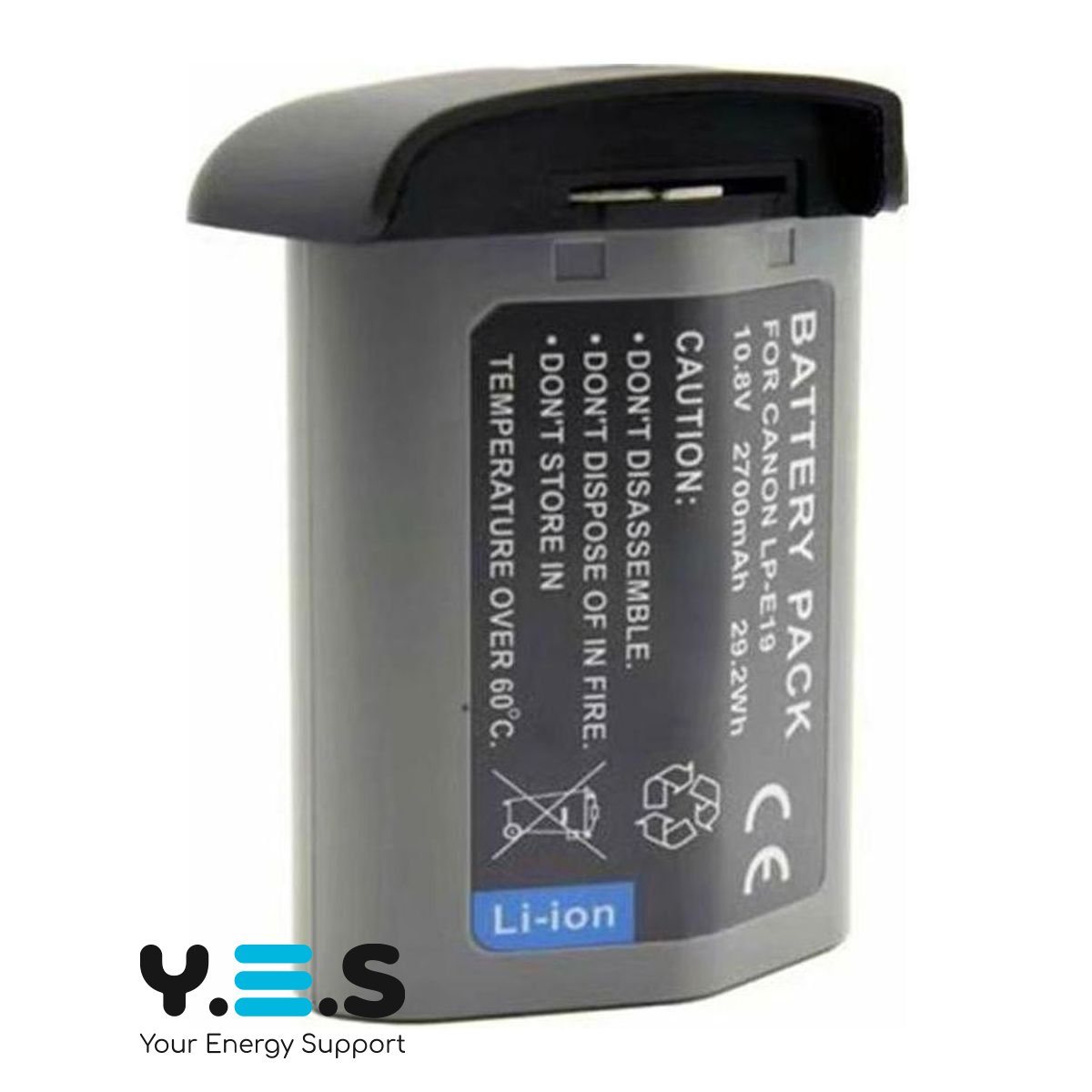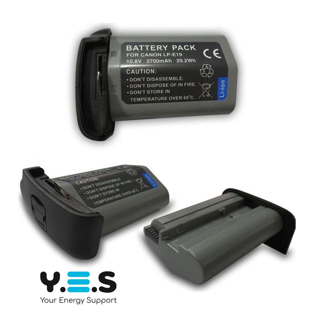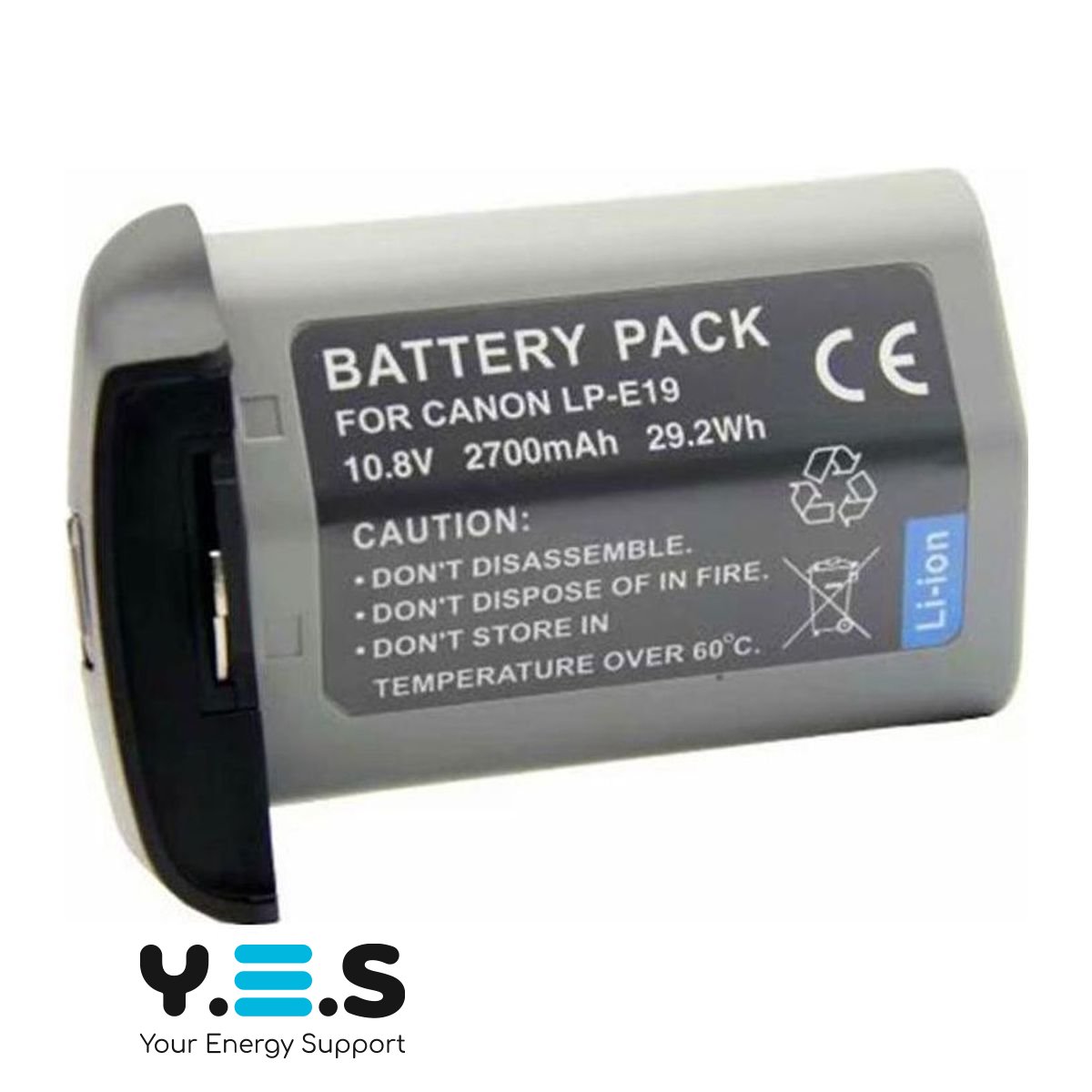 Батарея LP-E19, ємністю 2700 mAh, 100% сумісна з оригінальним акумулятором CANON LP-E19, а також LP-E4 та LP-E4N. Батарея містить «інфо-чіп», який дозволяє відображати час заряду, що залишився, або кількість кадрів на дисплеї камери, і заряджати акумулятор як від оригінального зарядного пристрою , так від будь-якого сумісного.