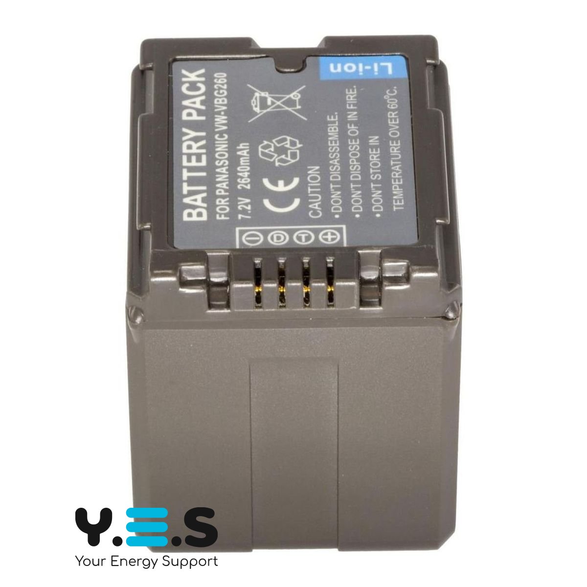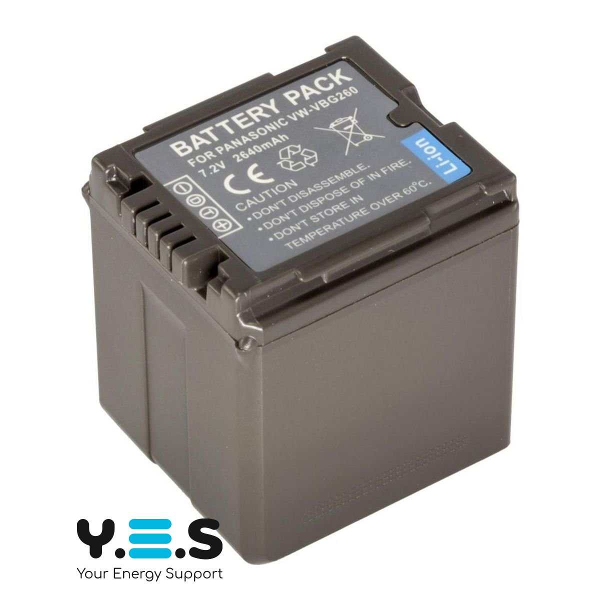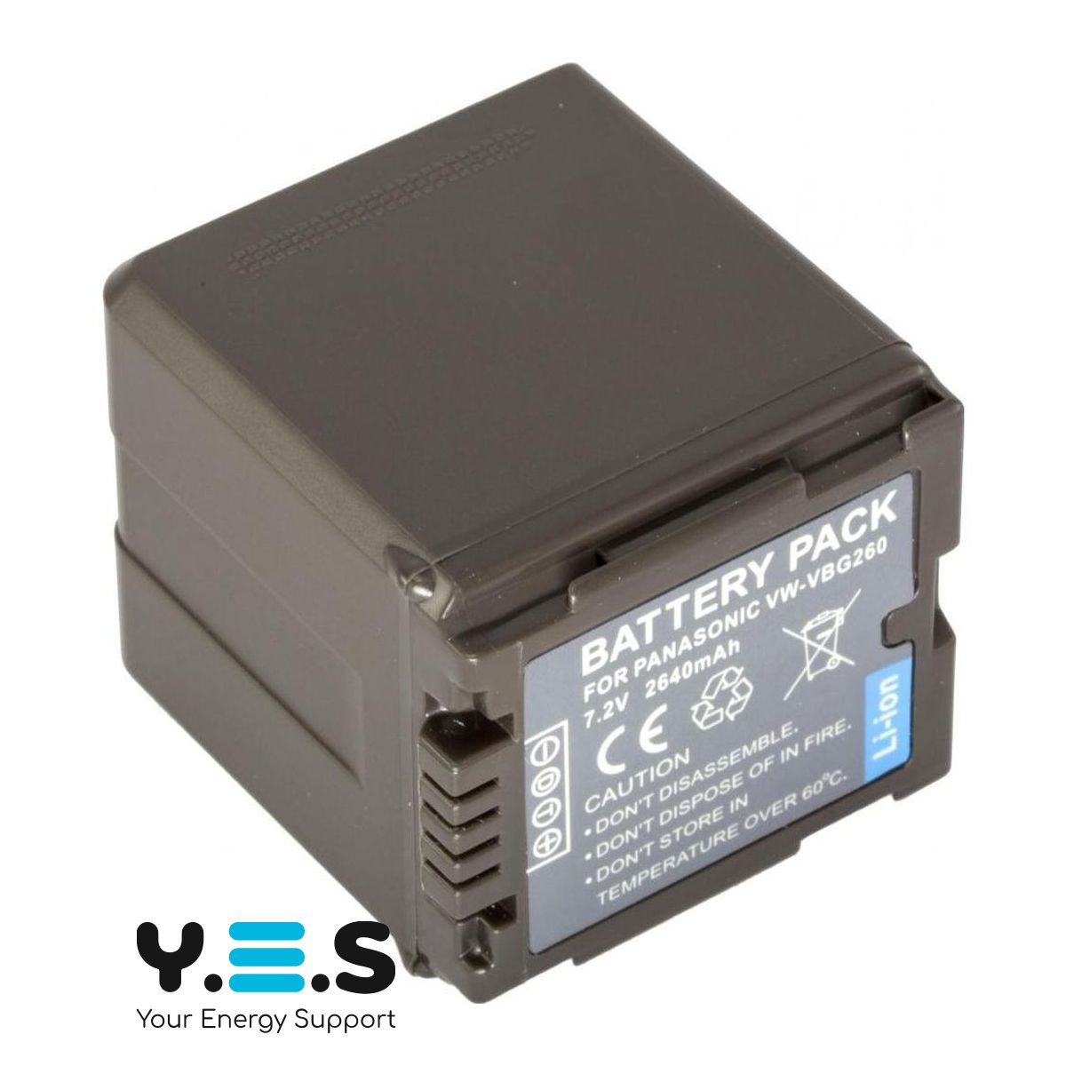 Батарея VW-VBG260, ємністю 2100 mAh, 100% сумісна з оригінальним акумулятором PANASONIC VW-VBG260. Батарея містить «інфо-чіп», який дозволяє відображати час заряду, що залишився, або кількість кадрів на дисплеї камери, і заряджати акумулятор як від оригінального зарядного пристрою PANASONIC DE-A51BA