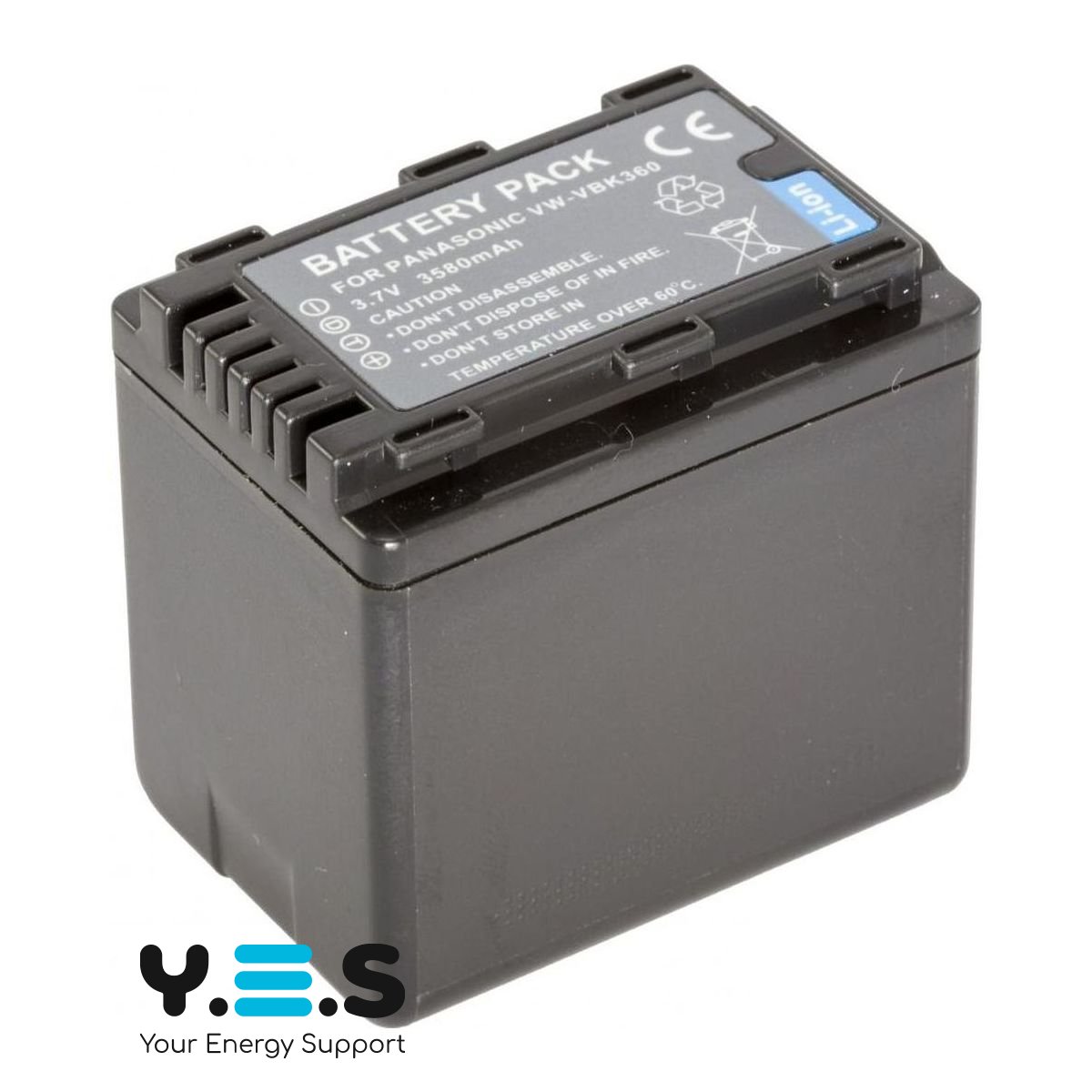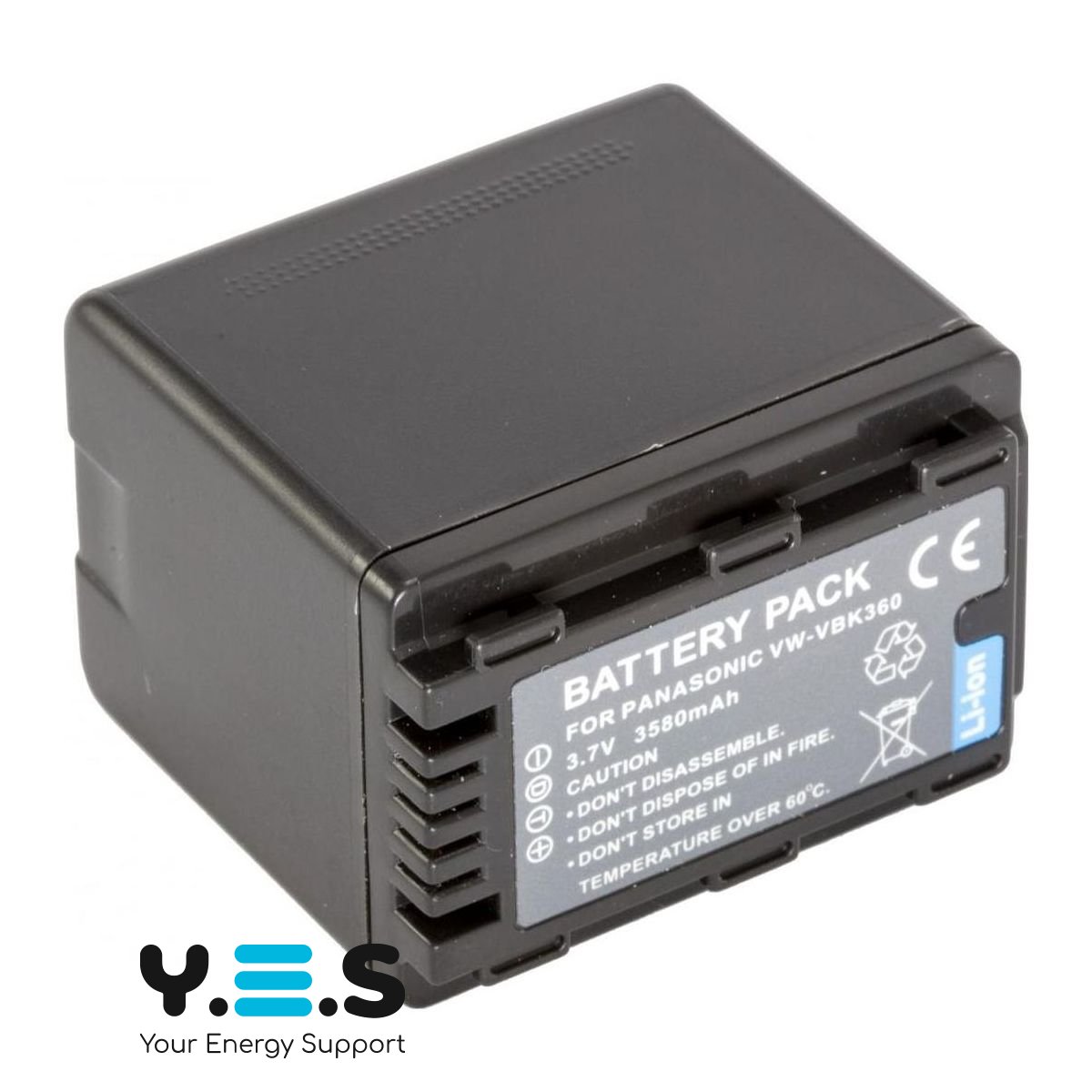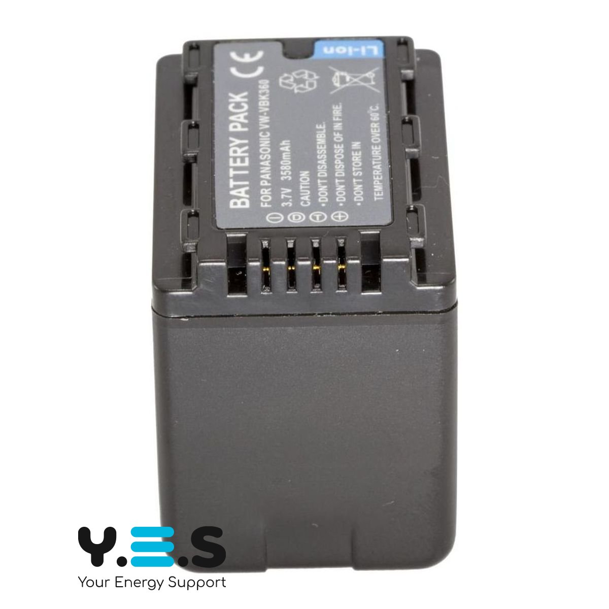 Батарея VW-VBK360, ємністю 3580 mAh, 100% сумісна з оригінальним акумулятором PANASONIC VW-VBK360. Батарея містить «інфо-чіп», який дозволяє відображати час заряду, що залишився, або кількість кадрів на дисплеї камери, і заряджати акумулятор як від оригінального зарядного пристрою PANASONIC VW-BC10
