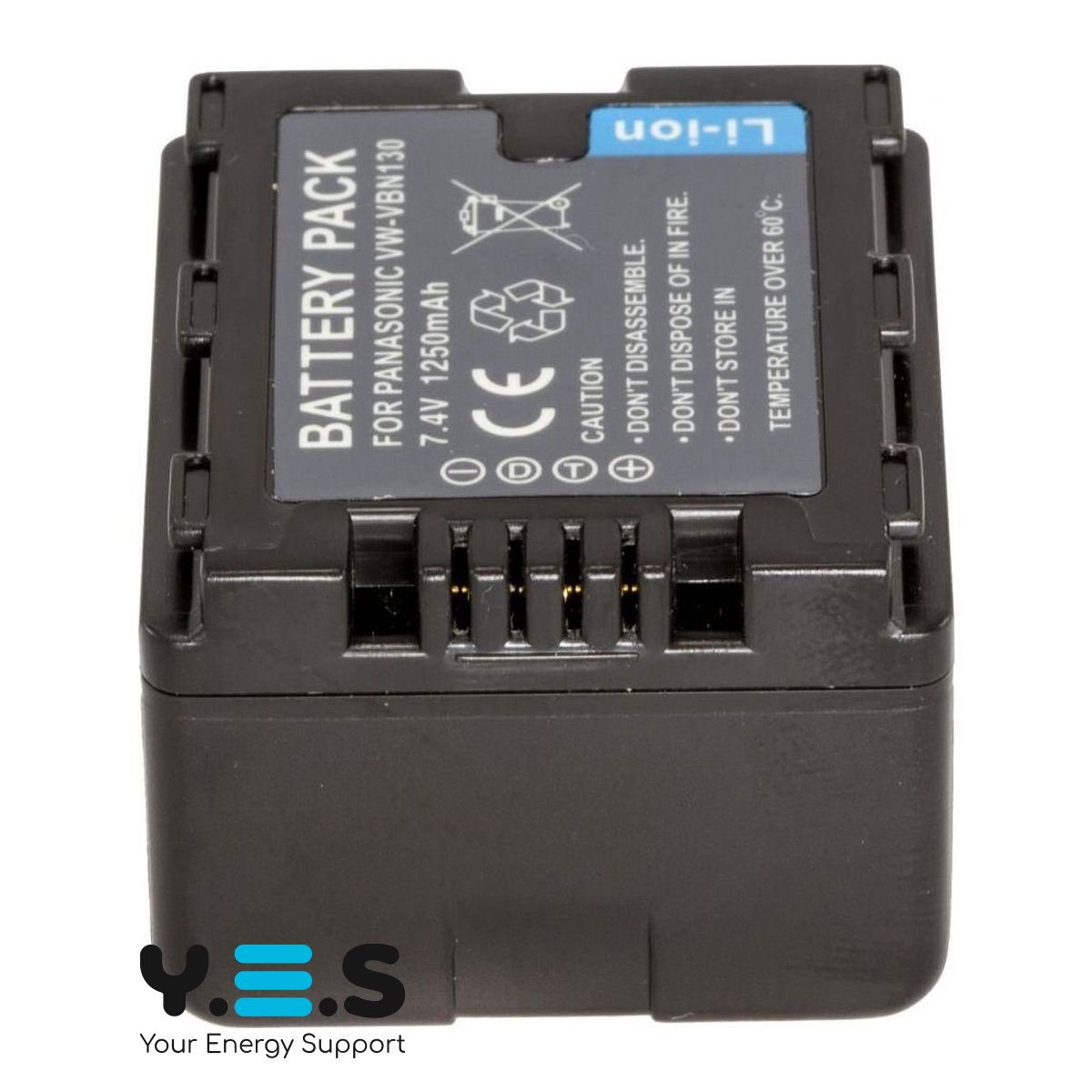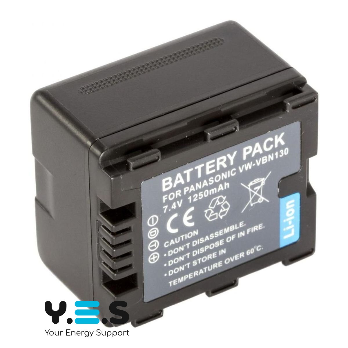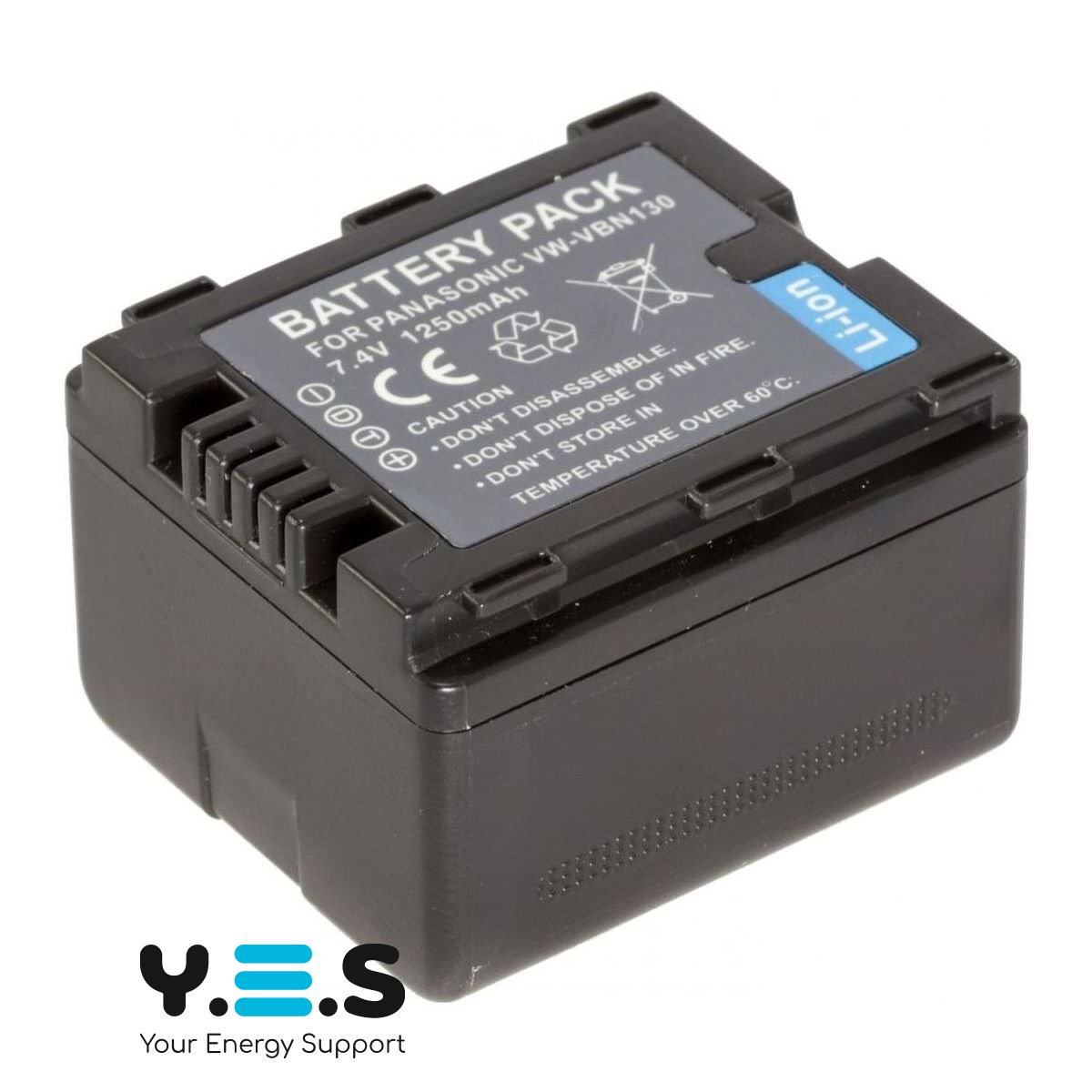 Батарея VW-VBN130, ємністю 1250 mAh, 100% сумісна з оригінальним акумулятором PANASONIC VW-VBN130. Батарея містить «інфо-чіп», який дозволяє відображати час заряду, що залишився, або кількість кадрів на дисплеї камери, і заряджати акумулятор як від оригінального зарядного пристрою PANASONIC VW-BC20
