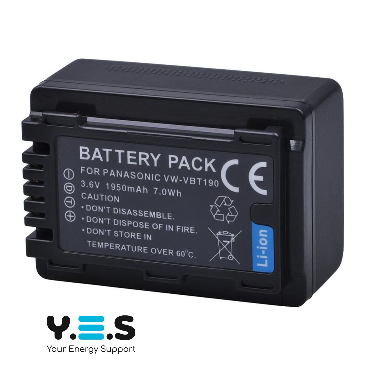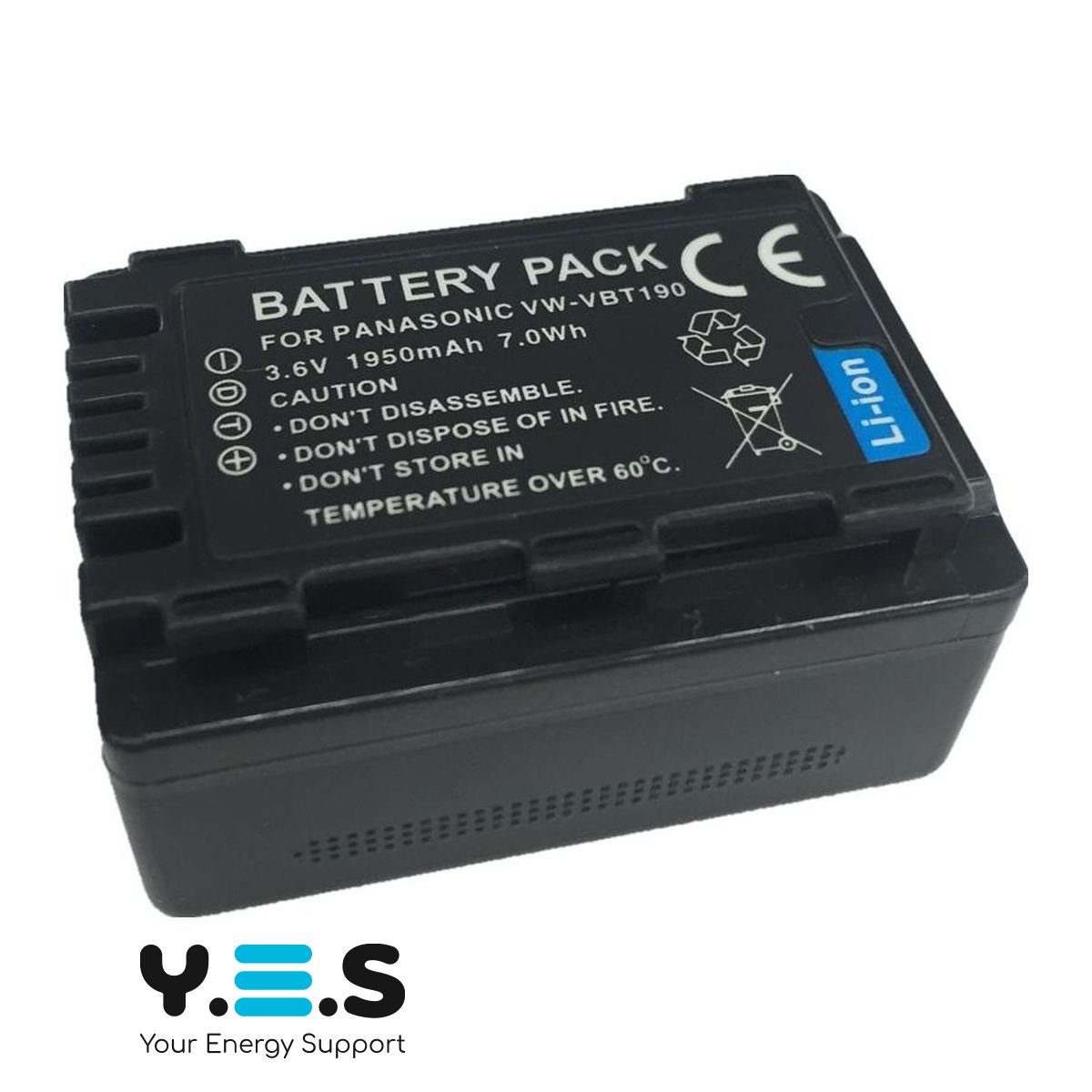 Батарея VW-VBT190, ємністю 1950 mAh, 100% сумісна з оригінальним акумулятором PANASONIC VW-VBT190. Батарея містить «інфо-чіп», який дозволяє відображати час заряду, що залишився, або кількість кадрів на дисплеї камери, і заряджати акумулятор як від оригінального зарядного пристрою PANASONIC VW-BC10