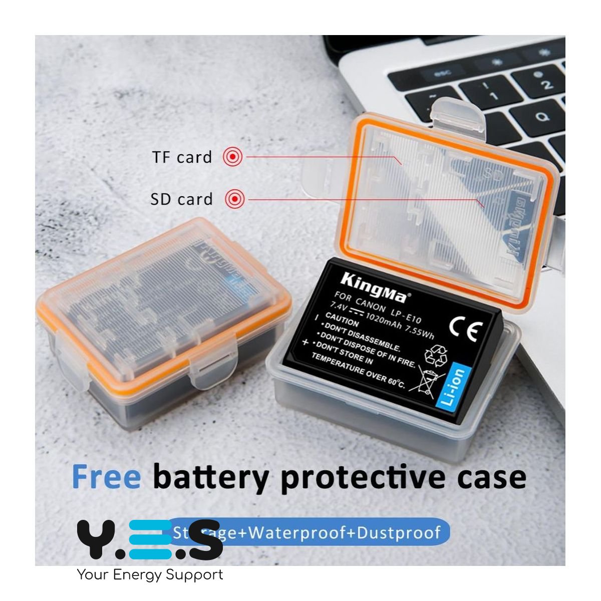 - Чесна ємність: якщо заводська ємність акумулятора KingMa LP-E10 дорівнює 1020 mAh, то саме ця ємність і буде заявлено на акумуляторі, ні одиницею більше. Якщо ви знайшли батарею, ємність якої на етикетці значно перевищує оригінальну, то це, напевно, помилкова інформація. Якість складання: акумулятори KingMa проходять ретельний процес контролю якості на кожному етапі виробництва. Кожна батарея тестується на перегрів (overheating), коротке замикання (short circuit), повний розряд (over discharging) і надзаряд (overcharging), перенапруга (overvoltage) і надструми (overcurrent)