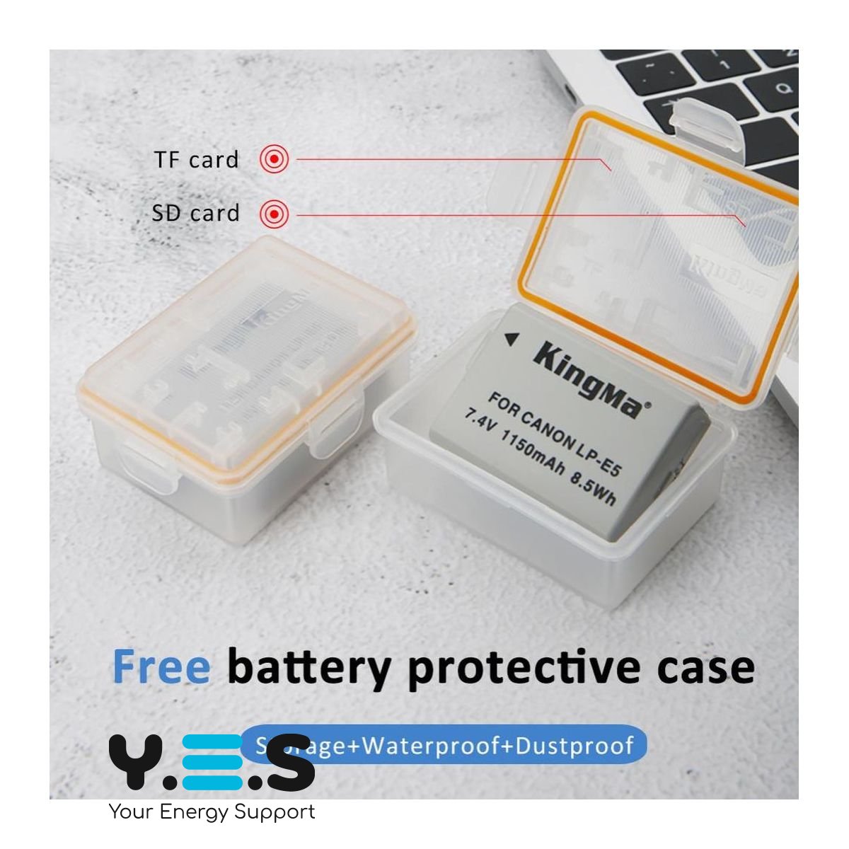 - Чесна ємність: якщо заводська ємність акумулятора KingMa LP-E5 дорівнює 1150 mAh, то саме ця ємність і буде заявлено на акумуляторі, ні одиницею більше. Якщо ви знайшли батарею, ємність якої на етикетці значно перевищує оригінальну, то це, напевно, помилкова інформація. Якість складання: акумулятори KingMa проходять ретельний процес контролю якості на кожному етапі виробництва. Кожна батарея тестується на перегрів (overheating), коротке замикання (short circuit), повний розряд (over discharging) і надзаряд (overcharging), перенапруга (overvoltage) і надструми (overcurrent)