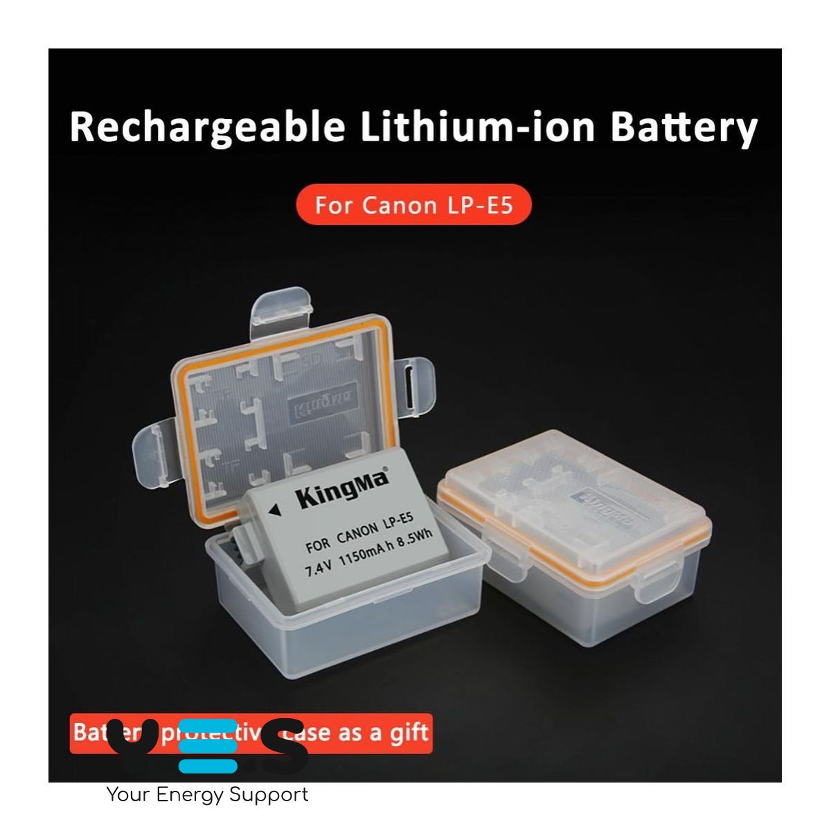 - Сумісність: Canon LP-E5, EOS 1000D, EOS 450D, EOS 500D, EOS Kiss F, EOS Kiss X2, EOS Kiss X3, EOS Rebel T1i, EOS Rebel XS, EOS Rebel XSi