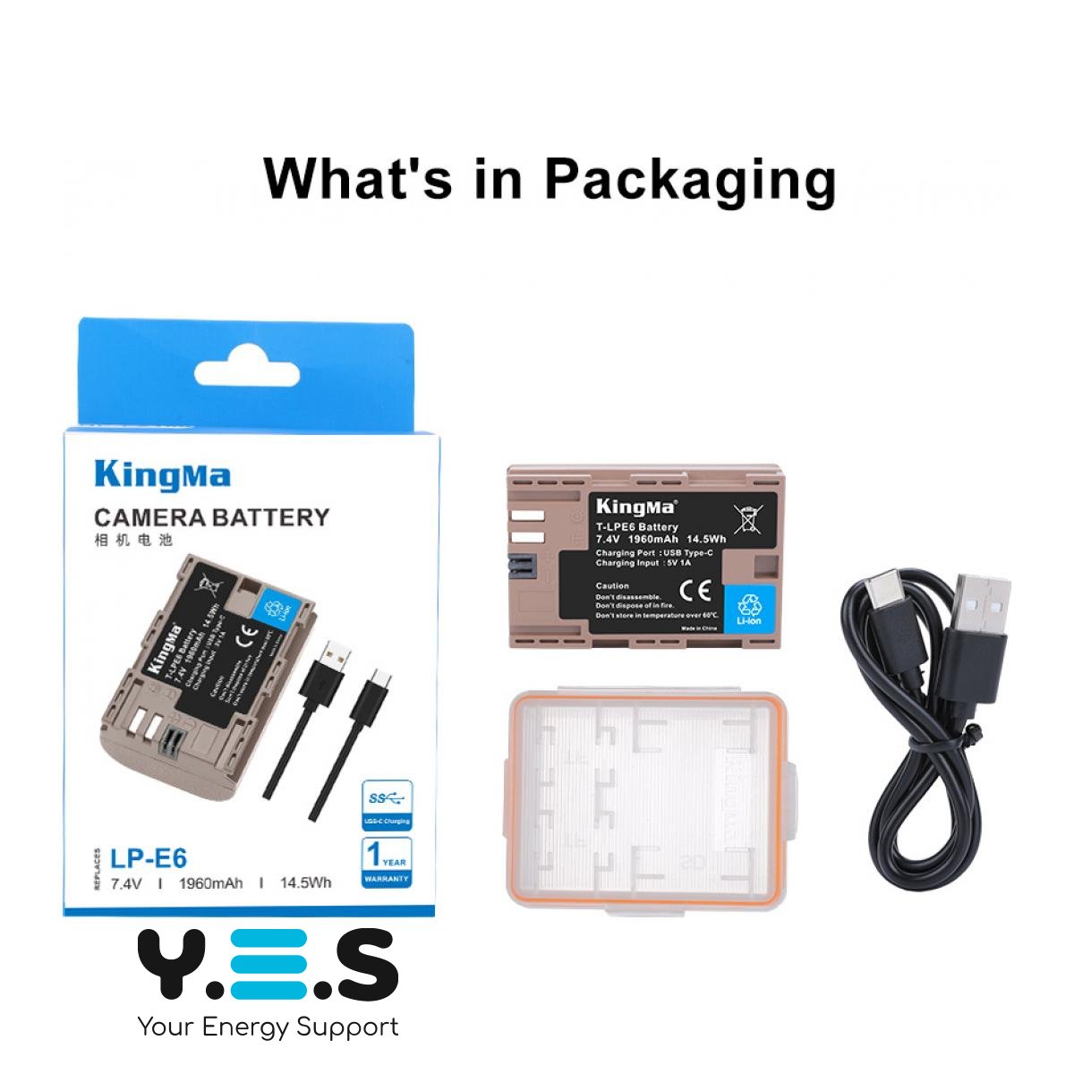 Акумуляторна батарея KingMa LP-E6 з USB-C (Type-C) портом для зарядки напряму від звичайного зарядного пристрою або від повербанка (заміна Canon LP-E6) з технологією Smart IC Chip – це акумулятор нового покоління, на 100% відповідний оригінальному акумулятору по ємності та зносостійкості. Підходить для камер Canon.