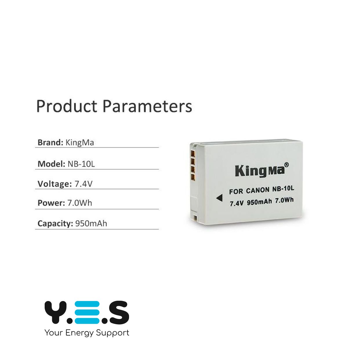 - Чесна ємність: якщо заводська ємність акумулятора KingMa NB-10L дорівнює 950 mAh, то саме ця ємність і буде заявлено на акумуляторі, ні одиницею більше. Якщо ви знайшли батарею, ємність якої на етикетці значно перевищує оригінальну, то це, напевно, помилкова інформація. Якість складання: акумулятори KingMa проходять ретельний процес контролю якості на кожному етапі виробництва. Кожна батарея тестується на перегрів (overheating), коротке замикання (short circuit), повний розряд (over discharging) і надзаряд (overcharging), перенапруга (overvoltage) і надструми (overcurrent)
