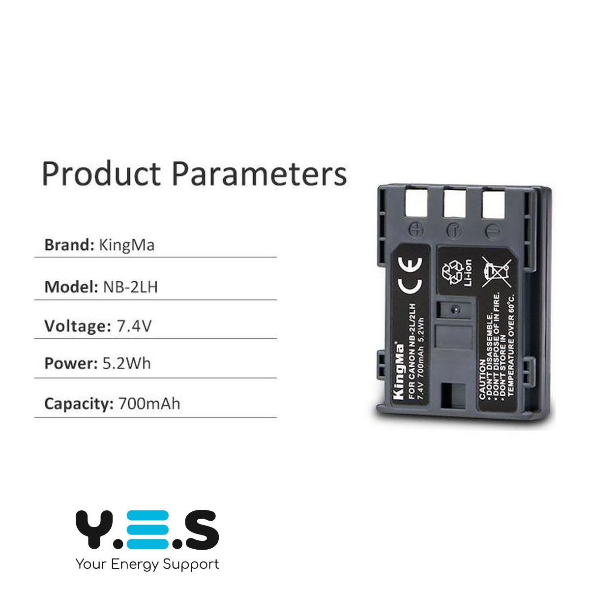- Чесна ємність: якщо заводська ємність акумулятора KingMa NB-2LH дорівнює 700 mAh, то саме ця ємність і буде заявлено на акумуляторі, ні одиницею більше. Якщо ви знайшли батарею, ємність якої на етикетці значно перевищує оригінальну, то це, напевно, помилкова інформація. Якість складання: акумулятори KingMa проходять ретельний процес контролю якості на кожному етапі виробництва. Кожна батарея тестується на перегрів (overheating), коротке замикання (short circuit), повний розряд (over discharging) і надзаряд (overcharging), перенапруга (overvoltage) і надструми (overcurrent)