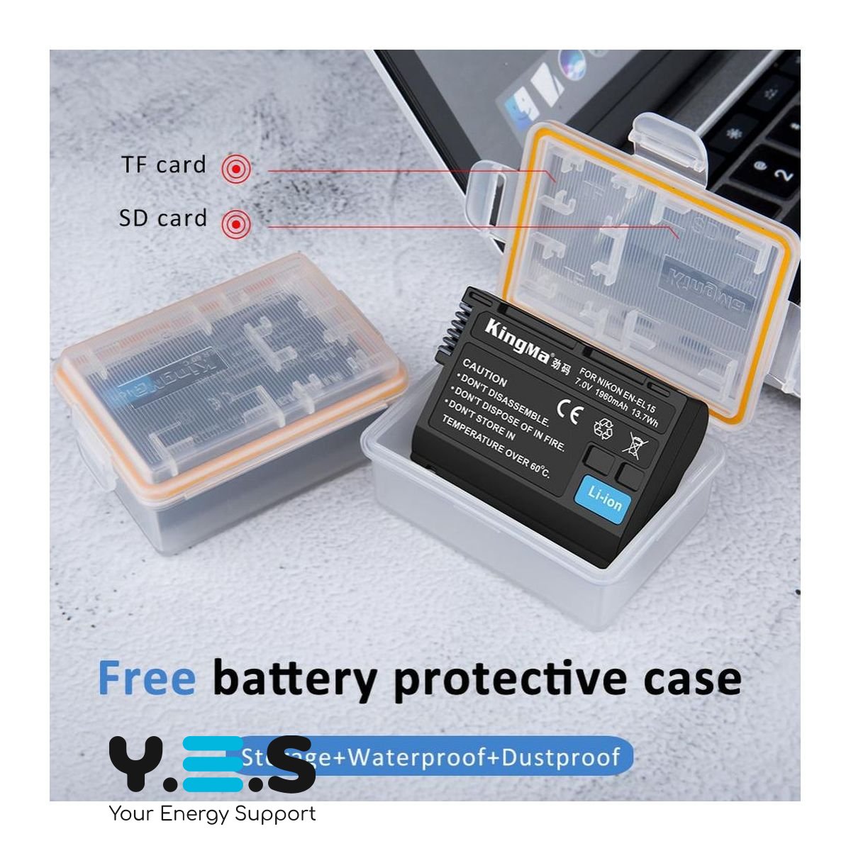 - Чесна ємність: якщо заводська ємність акумулятора KingMa EN-EL15 дорівнює 1960 mAh, то саме ця ємність і буде заявлено на акумуляторі, ні одиницею більше. Якщо ви знайшли батарею, ємність якої на етикетці значно перевищує оригінальну, то це, напевно, помилкова інформація. Якість складання: акумулятори KingMa проходять ретельний процес контролю якості на кожному етапі виробництва. Кожна батарея тестується на перегрів (overheating), коротке замикання (short circuit), повний розряд (over discharging) і надзаряд (overcharging), перенапруга (overvoltage) і надструми (overcurrent)