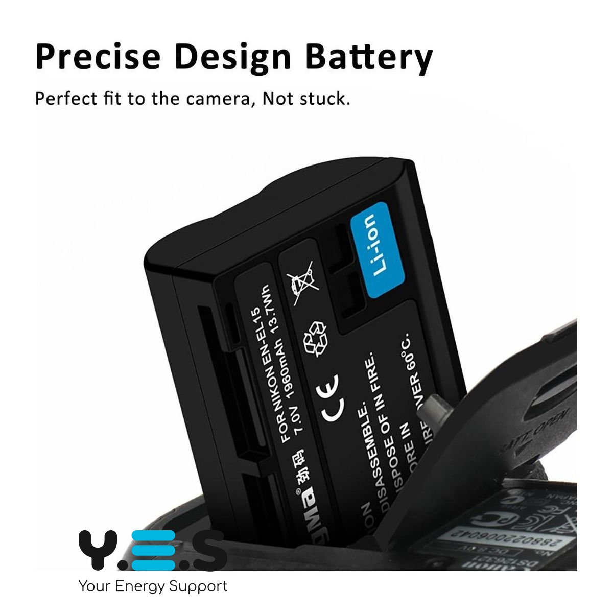 - Сумісність: Nikon EN-EL15, 1 V1, D600, D610, D7000, D7100, D750, D800, D8000, D800E, D810, D810A, D7200, D850, D500, Z6