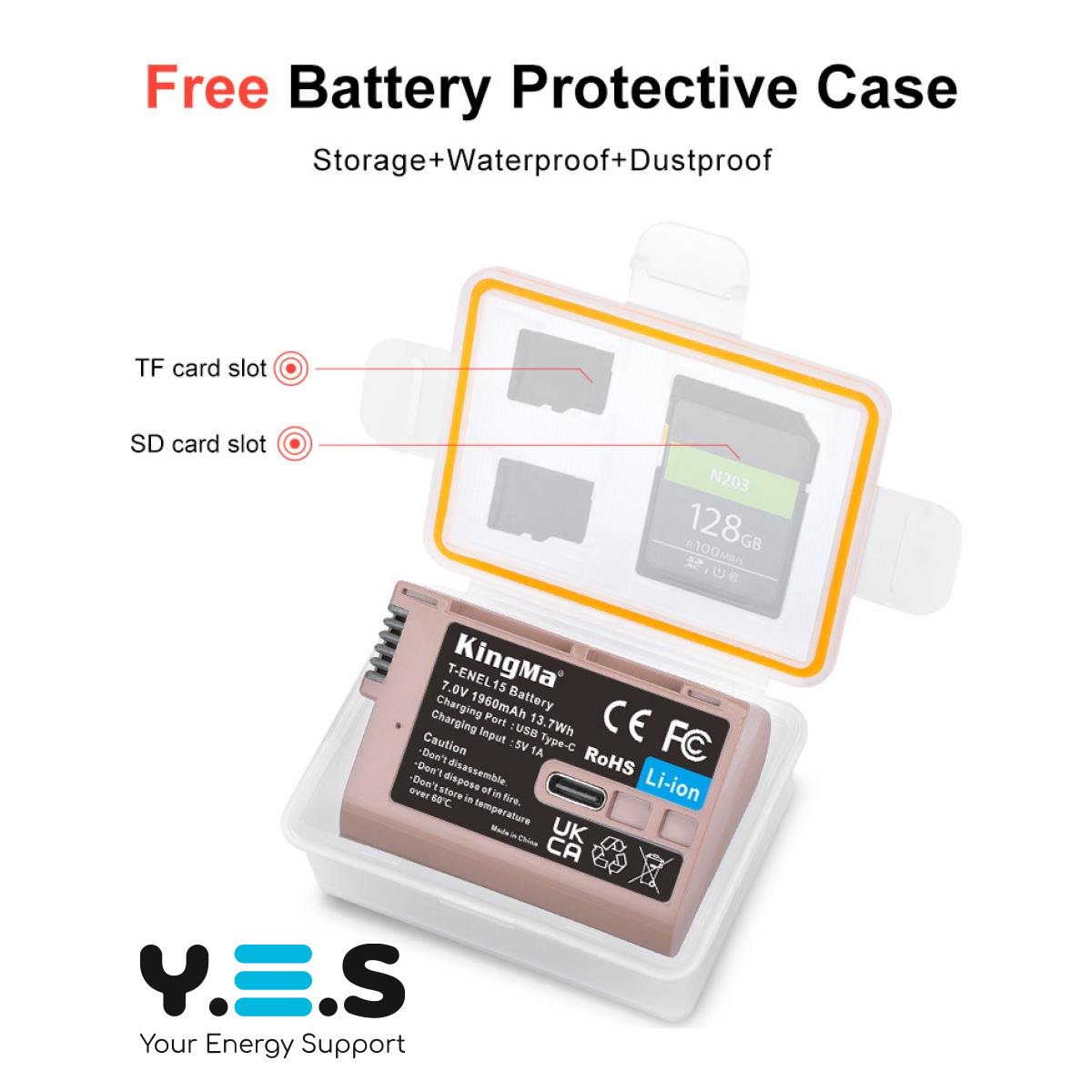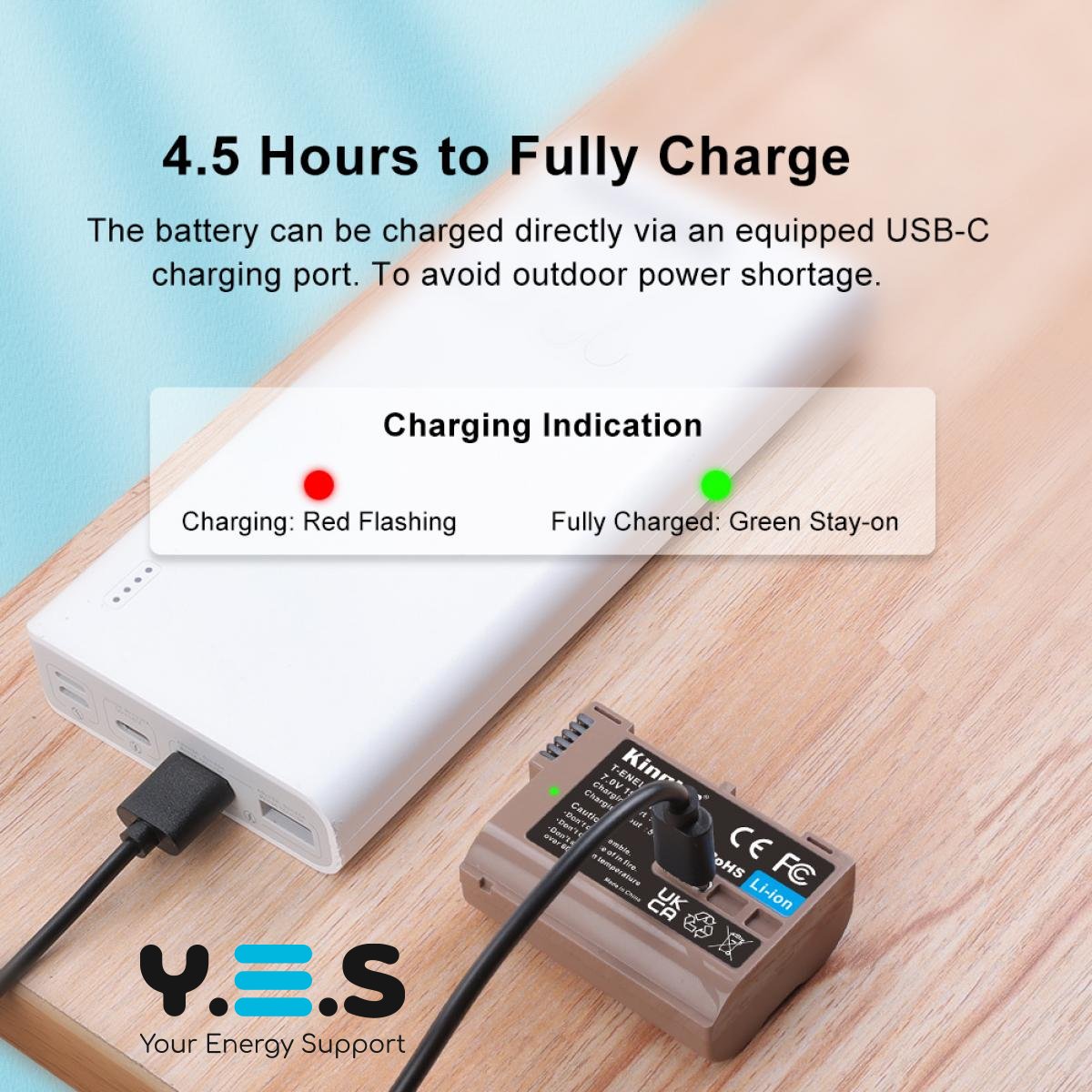 Акумуляторна батарея KingMa EN-EL15 з USB-C (Type-C) портом для зарядки напряму від звичайного зарядного пристрою або від повербанка (заміна Nikon EN-EL15) з технологією Smart IC Chip – це акумулятор нового покоління, на 100% відповідний оригінальному акумулятору по ємності та зносостійкості. Підходить для камер Nikon.