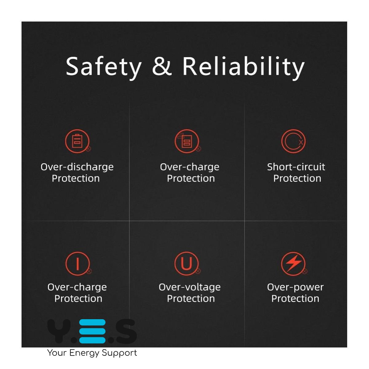 - Безпека: багаторівнева система захисту від короткого замикання, перегріву, перезаряду та перерозряду