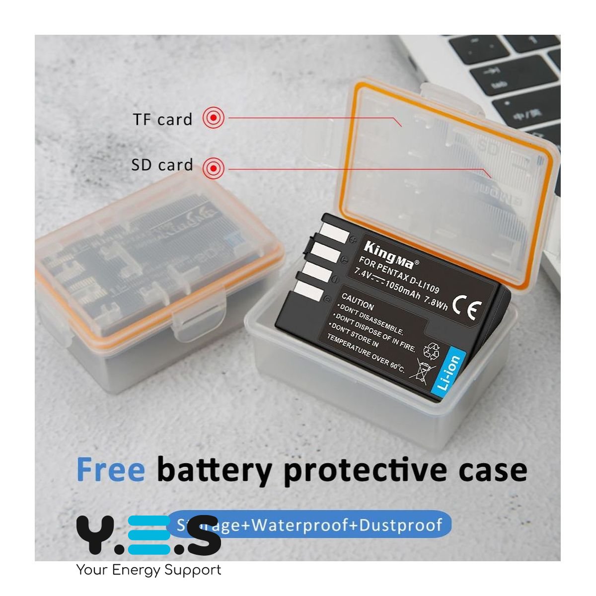 Акумуляторна батарея KingMa D-LI109 (заміна Pentax D-LI109) з технологією Smart IC Chip – це акумулятор нового покоління, що забезпечує безпомилкову комунікацію з камерою та на 100% відповідний оригінальному акумулятору по ємності, зносостійкості та функціональності. Підходить для камер Pentax.