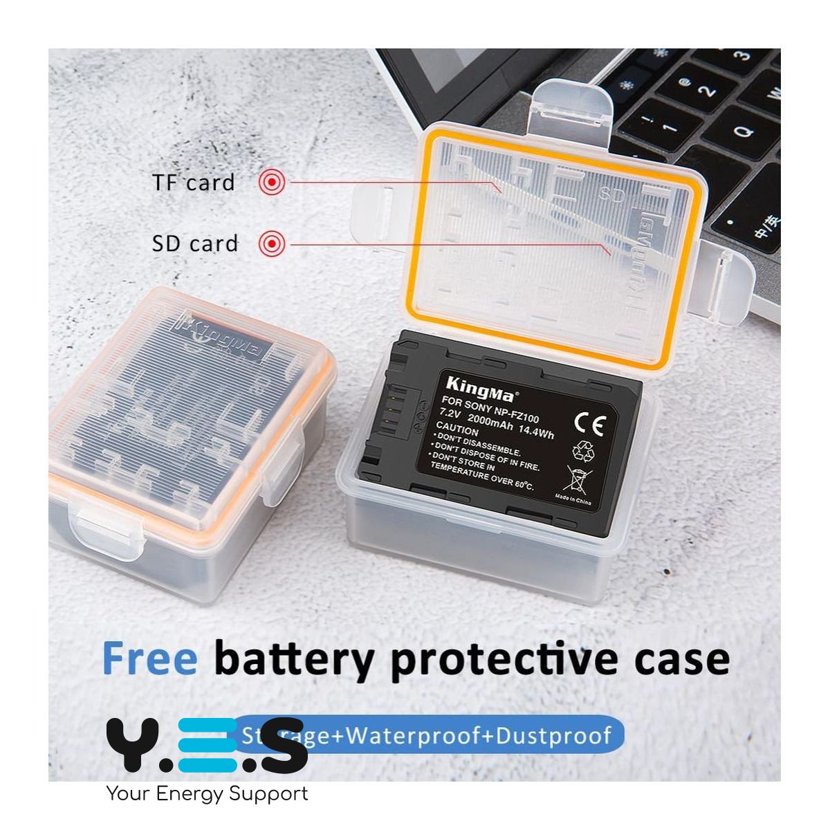 - Чесна ємність: якщо заводська ємність акумулятора KingMa NP-FZ100 дорівнює 2000 mAh, то саме ця ємність і буде заявлено на акумуляторі, ні одиницею більше. Якщо ви знайшли батарею, ємність якої на етикетці значно перевищує оригінальну, то це, напевно, помилкова інформація. Якість складання: акумулятори KingMa проходять ретельний процес контролю якості на кожному етапі виробництва. Кожна батарея тестується на перегрів (overheating), коротке замикання (short circuit), повний розряд (over discharging) і надзаряд (overcharging), перенапруга (overvoltage) і надструми (overcurrent)