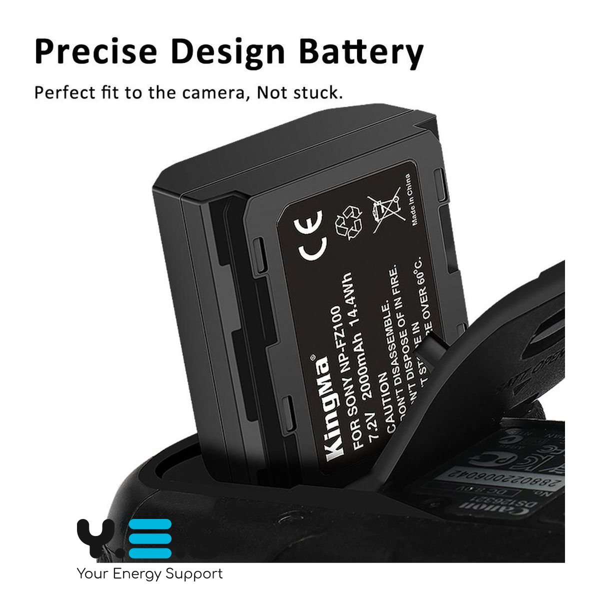 Акумуляторна батарея KingMa NP-FZ100 (заміна Sony NP-FZ100) з технологією Smart IC Chip – це акумулятор нового покоління, що забезпечує безпомилкову комунікацію з камерою та на 100% відповідний оригінальному акумулятору по ємності, зносостійкості та функціональності. Підходить для камер Sony.