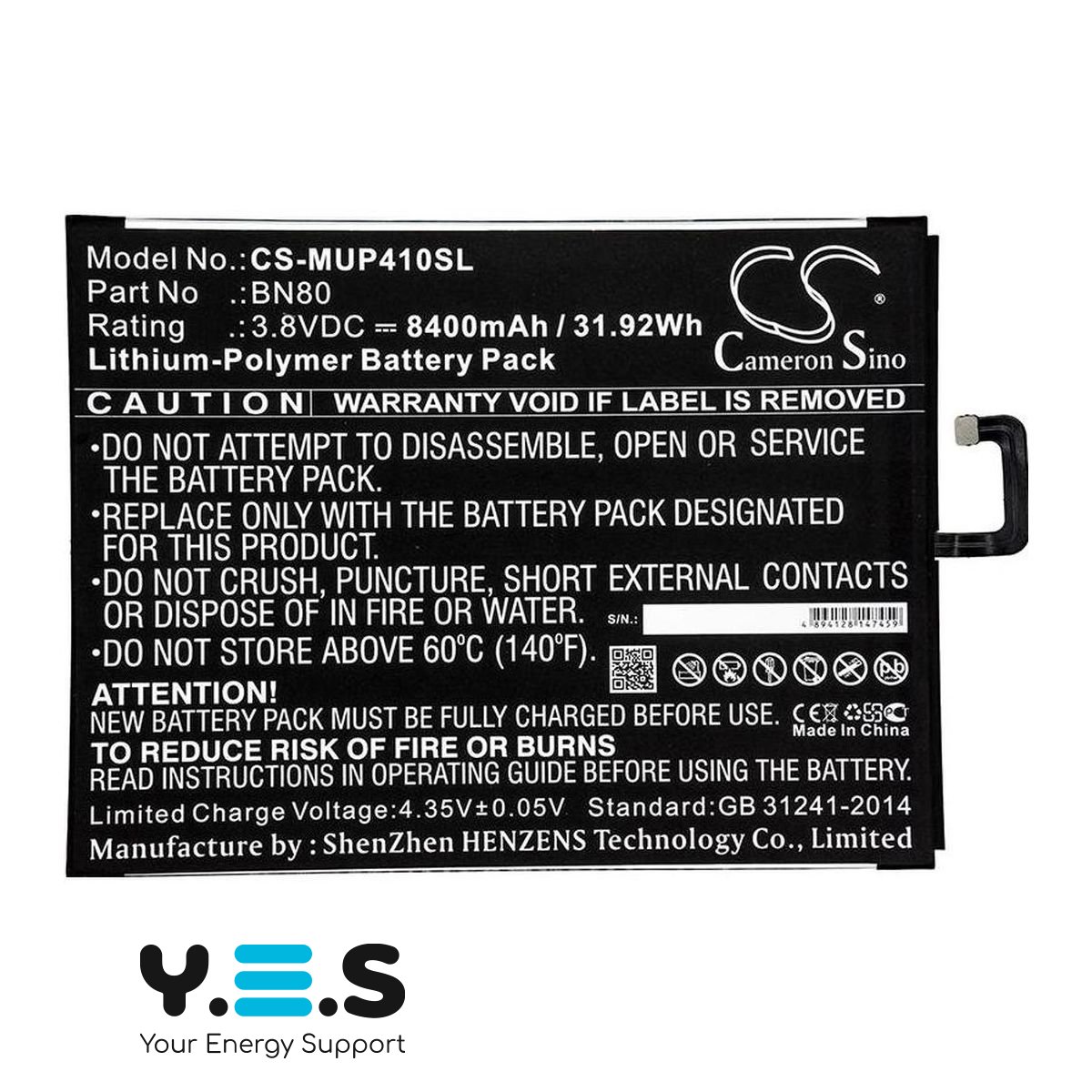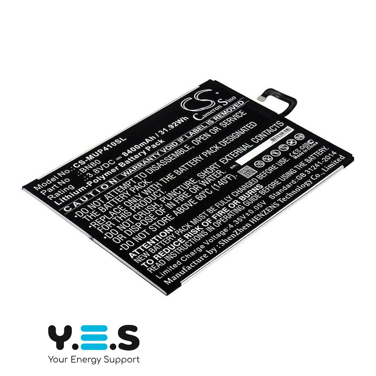 Акумулятор пройшов всі заводські випробування з якості та безпеки і повністю сумісний з оригінальним акумулятором Xiaomi BN80 (CS-MUP410SL) Вашого планшета. Щоб переконатися в правильності вибору батареї, порівняйте серійний парт-номер батареї із сумісними парт-номерами цього акумулятора: BN80.