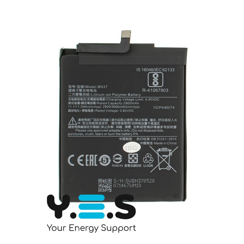 Оригінальна батарея для телефонів Xiaomi Redmi 6 / Redmi 6A — модель BN37, напруга 3.85V, ємність 2900mAh. Ідеальне рішення для швидкої заміни акумулятора та відновлення автономної роботи пристрою.