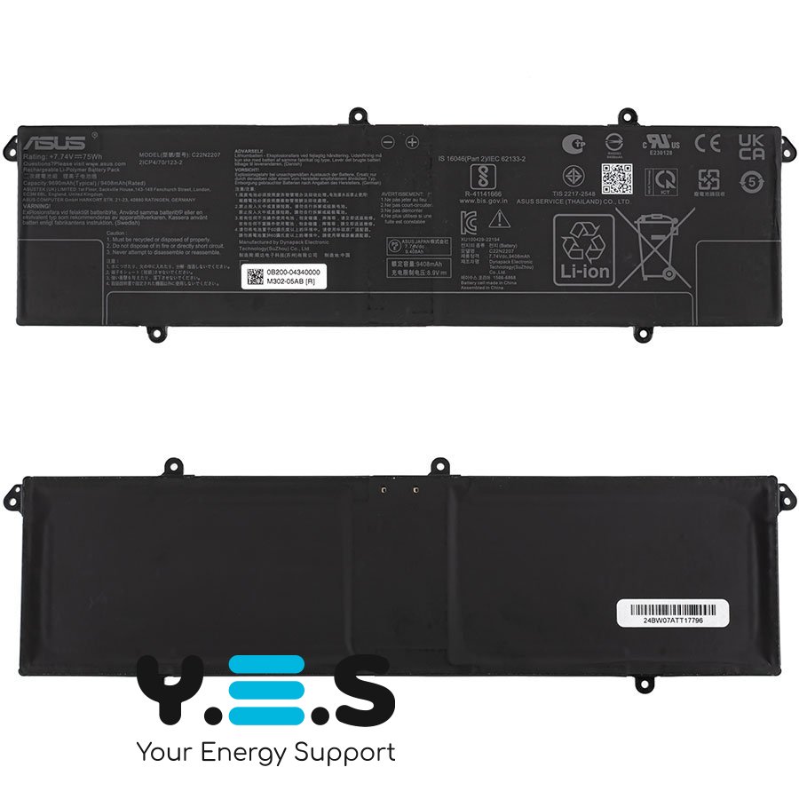 Акумулятор C22N2207 (7.74V, 9690mAh, 75Wh) — це оригінальний елемент живлення, розроблений для забезпечення тривалої та надійної роботи ноутбуків серії ASUS K5504. Виготовлений з використанням високоякісних літій-іонних елементів, цей акумулятор гарантує ефективність у повсякденному використанні.