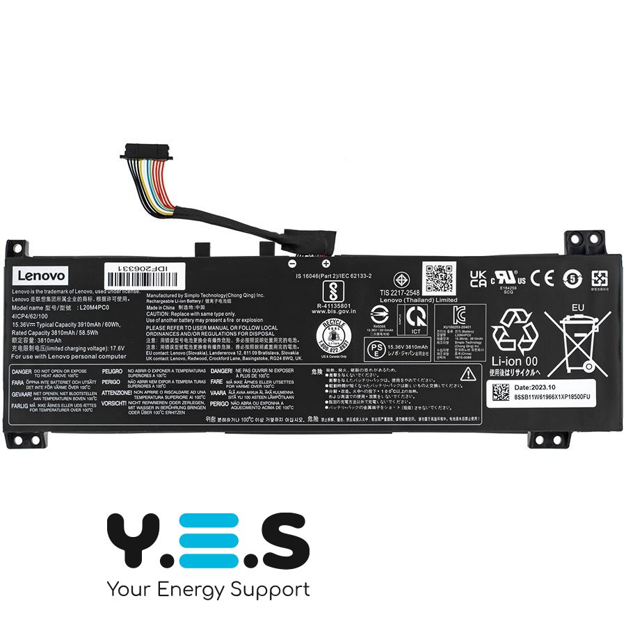 Акумулятор L20M4PC0 (15.36V, 3910mAh, 60Wh) є оригінальним джерелом живлення, розробленим для забезпечення тривалої та надійної роботи ноутбуків серії Lenovo Legion 5.