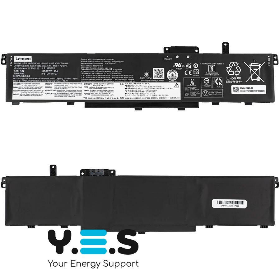 Акумулятор L21M6P70 (11.52V, 8160mAh, 94Wh) є оригінальним джерелом живлення, розробленим для забезпечення тривалої та надійної роботи ноутбука Lenovo ThinkPad P16 Gen 1.