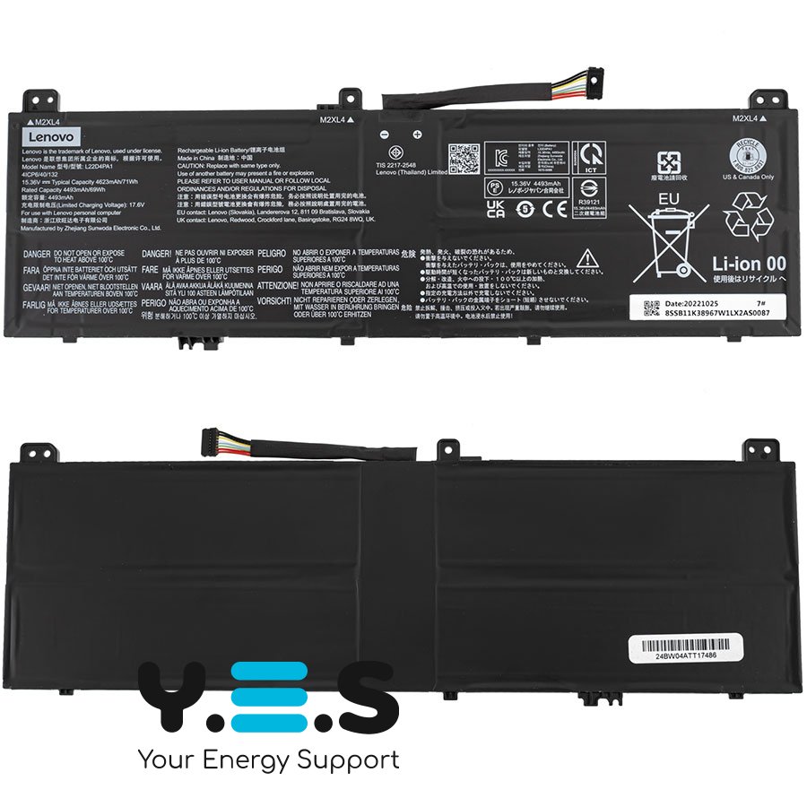Оригінальна батарея L22D4PA1 — це високоякісний літій-іонний акумулятор, спеціально розроблений для забезпечення надійного живлення ноутбуків серії Lenovo Yoga 7.