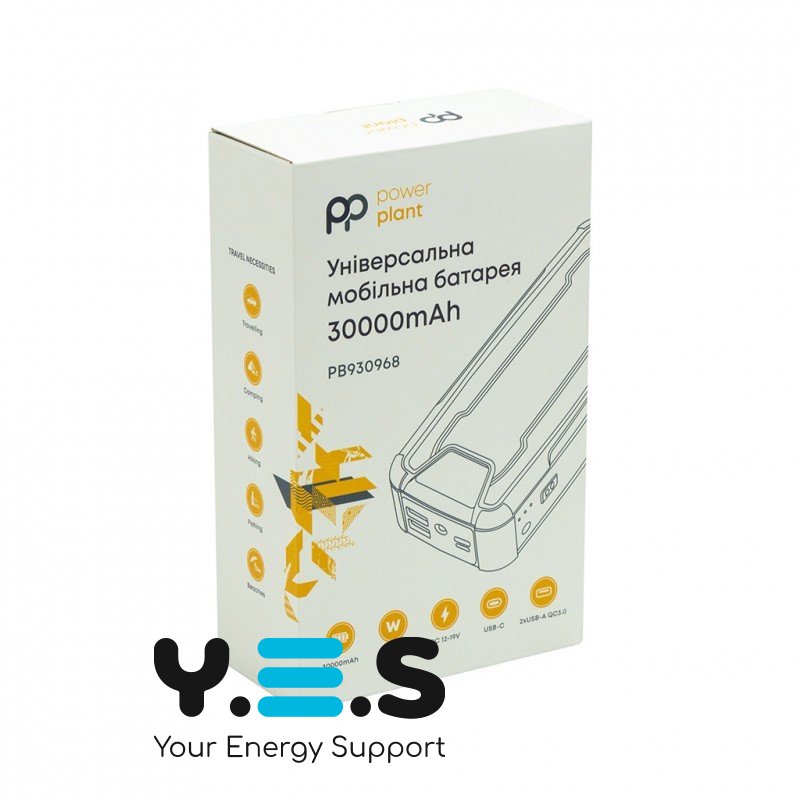 Батарея універсальна PowerPlant 30000mAh, PD/65W, QC/3.0, DC 12-19V(4A), USB-C, 2*USB-A (PB930968) (170404)