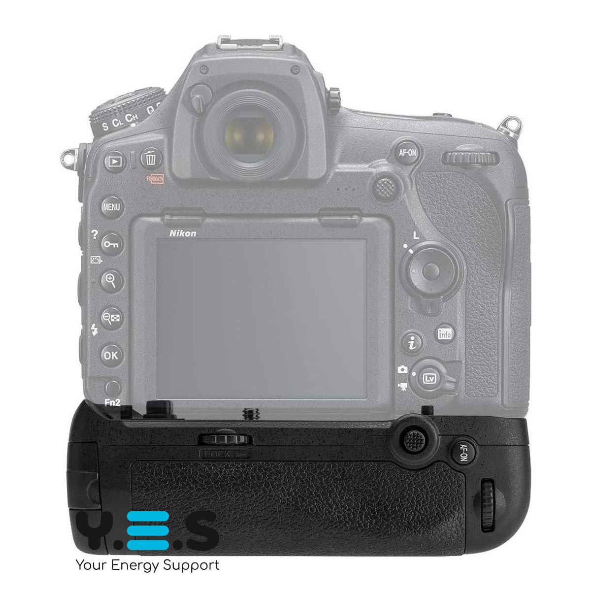 - Батарейна ручка оснащена кнопкою спуску затвора, автофокусування, корекції експозиції, основним диском та іншими елементами керування, що дозволяють робити вертикальні знімки так само легко, як і горизонтальні.