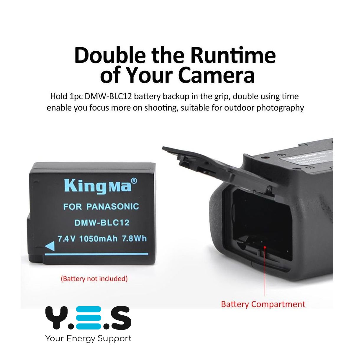 Батарейний блок KingMa розроблений спеціально для фотоапаратів Panasonic Lumix DMC-G80 G85 – якісний та професійний аналог оригінальної батарейної ручки Panasonic DMW-BGG1. Джерелом живлення є акумулятори DMW-BLC12. Бустер KingMa DMW-BGG1 покращить вашу вертикальну (портретну) фотографію, забезпечивши комфорт і зручність протягом тривалих періодів зйомки, а також компенсує дисбаланс, викликаний телеоб'єктивом.
