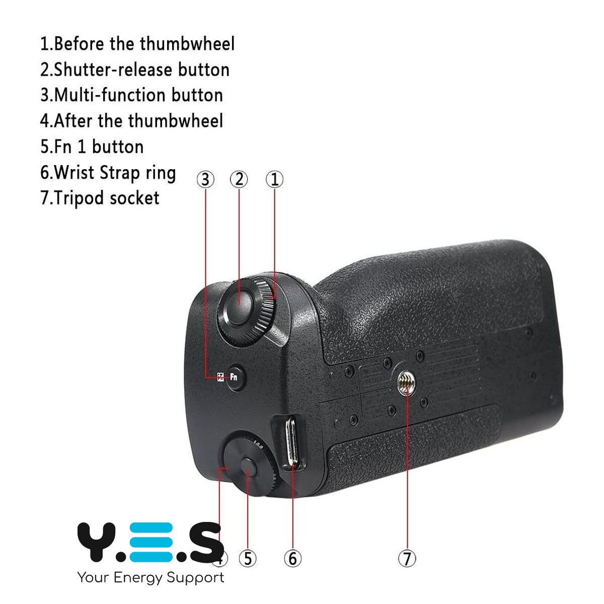 - Батарейна ручка оснащена кнопкою спуску затвора, автофокусування, корекції експозиції, основним диском та іншими елементами керування, що дозволяють робити вертикальні знімки так само легко, як і горизонтальні.